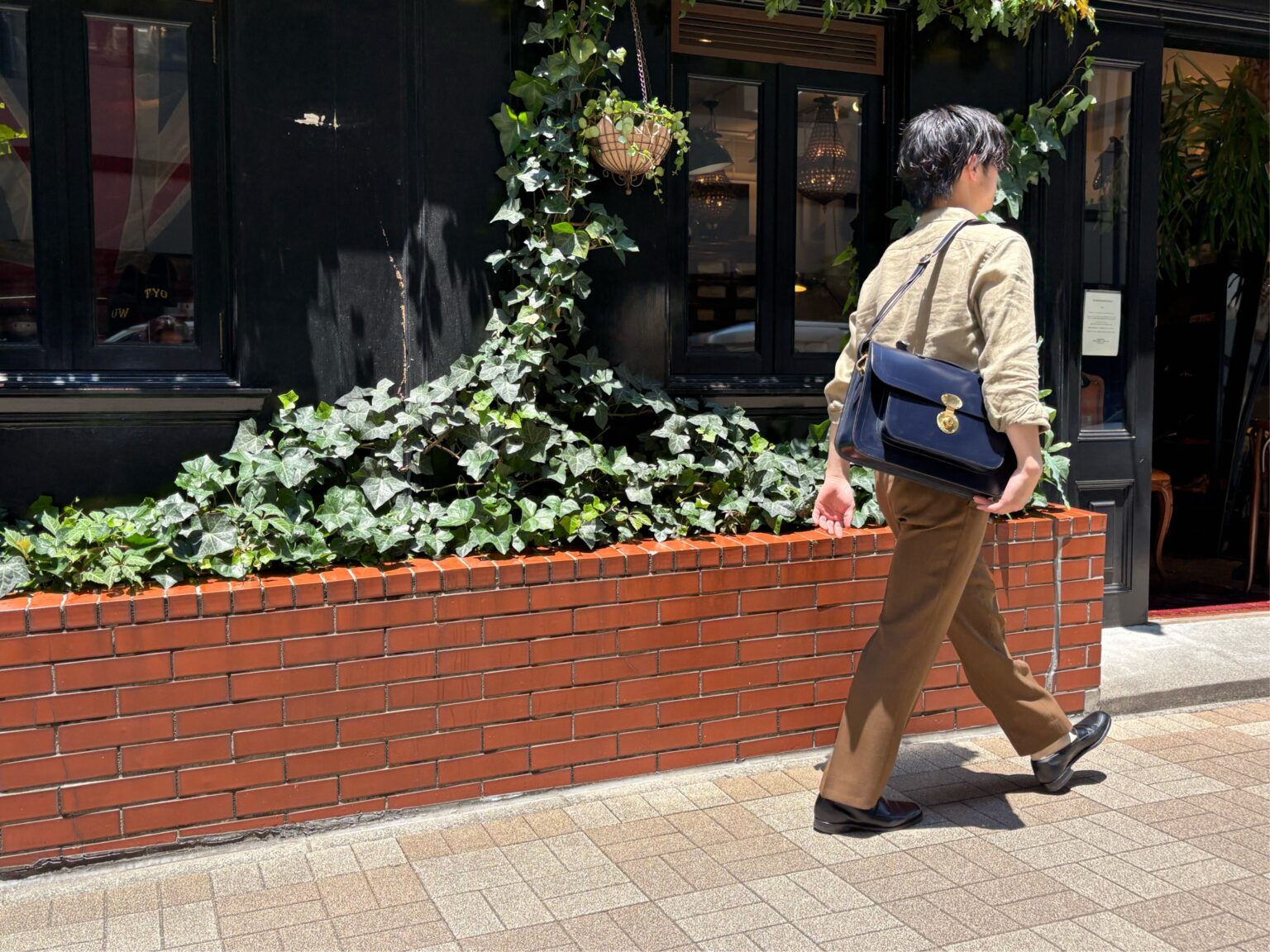 この手のネイビーは、直射日光の当たり方や周囲の明るさによって印象が変わるのが、なんとも言えない魅力。