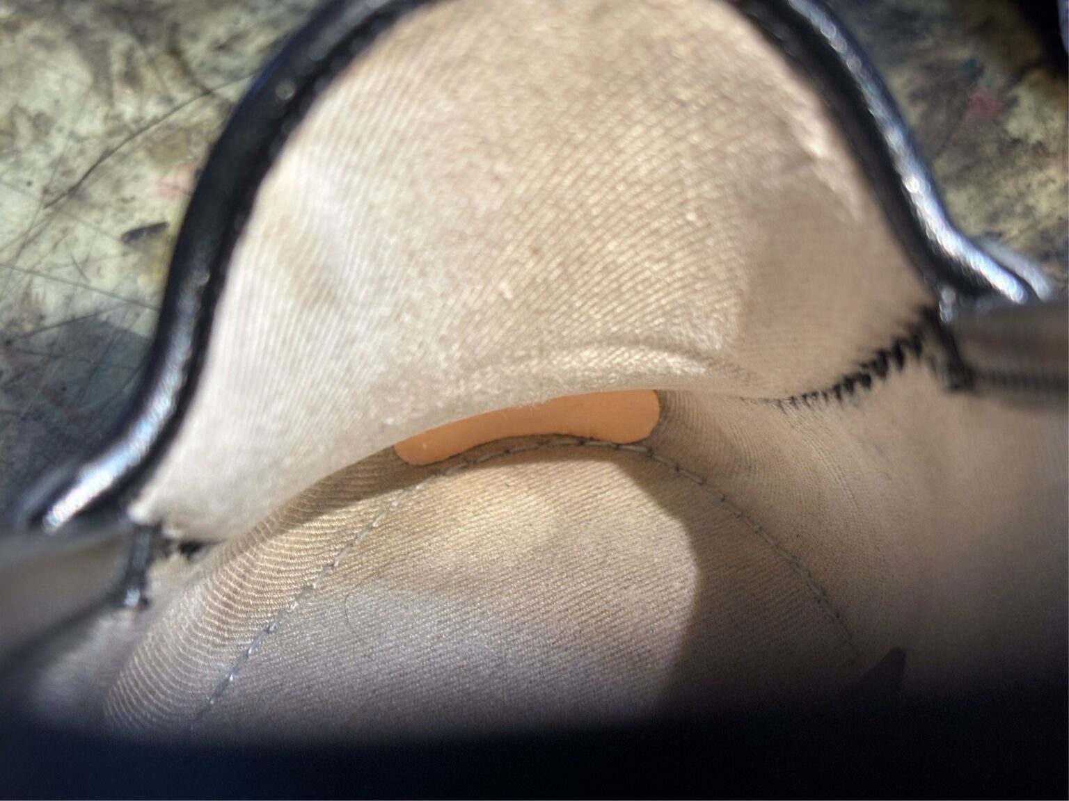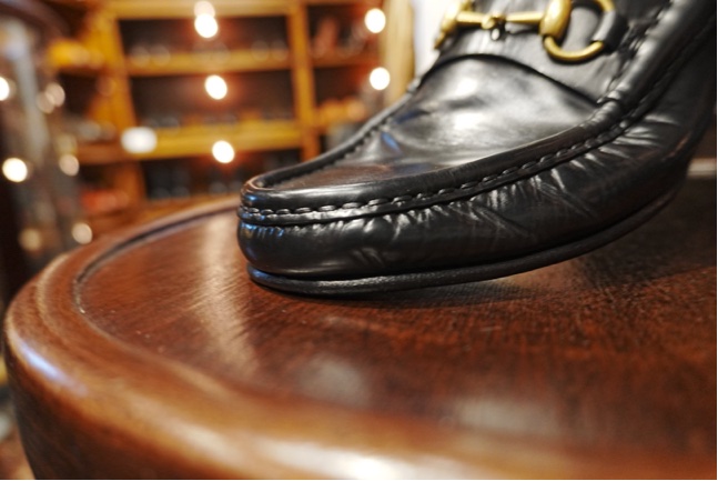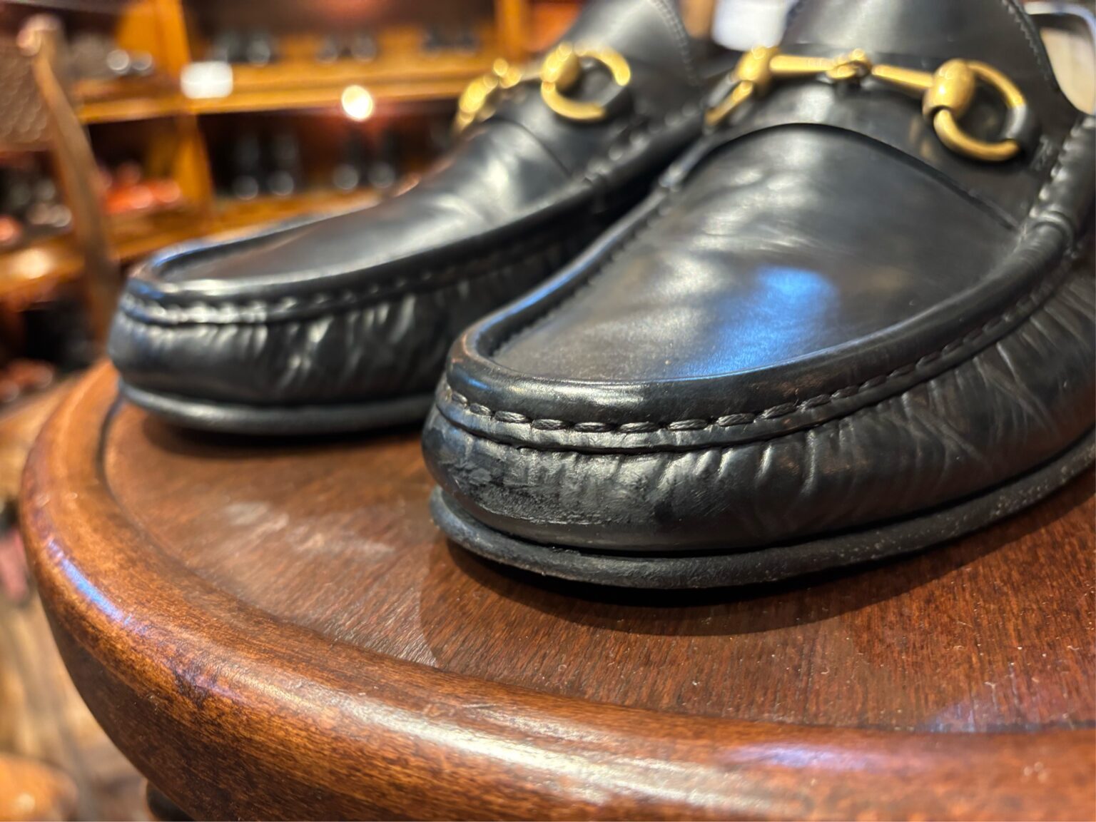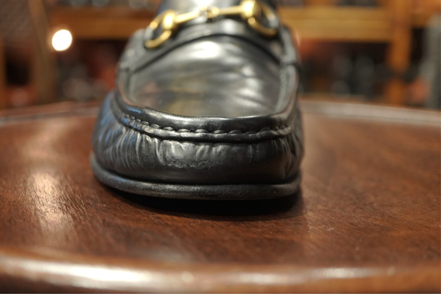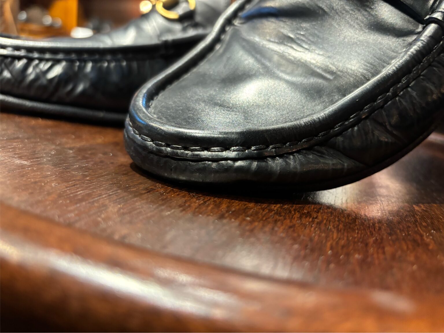 このタイプのモカシンシューズでは、実はこのような傷のつき方はよく見られます。