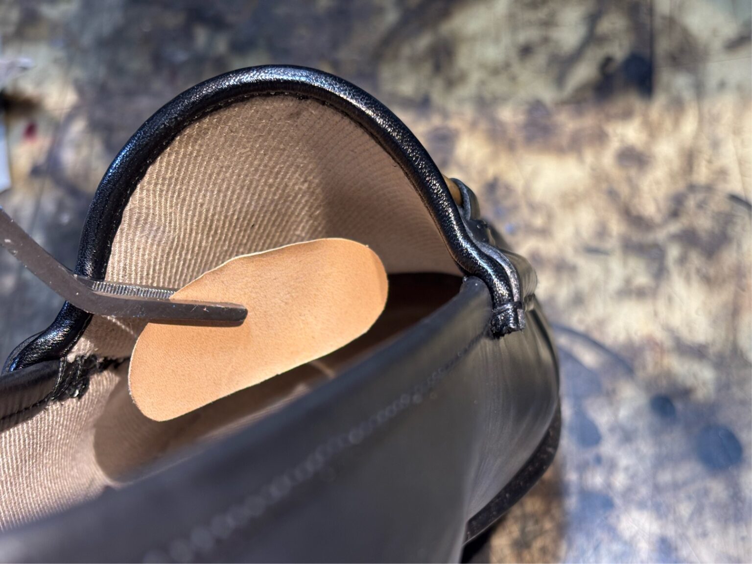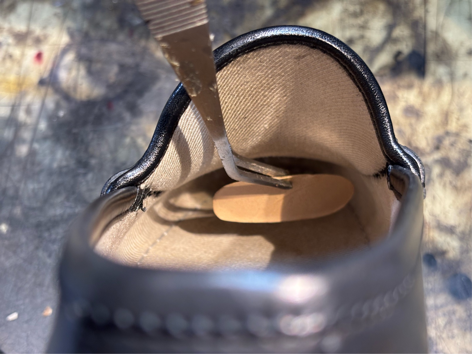 もともと先芯が入っていない靴なので、後付けで芯を作るイメージですね。