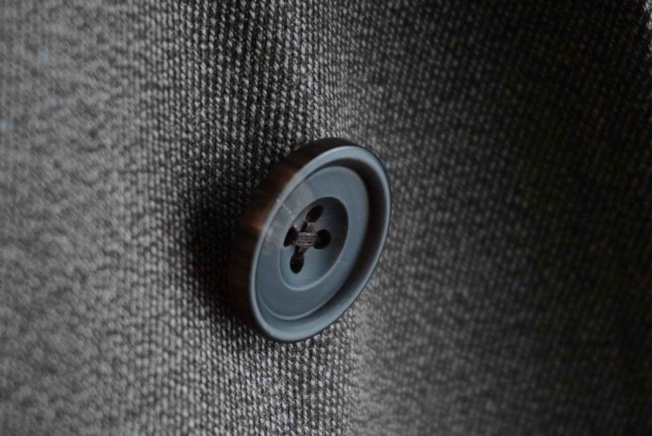 ボタンはマットな質感の水牛の角製で、控えめながらも高級感があります。