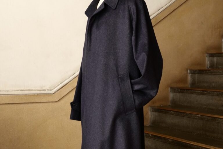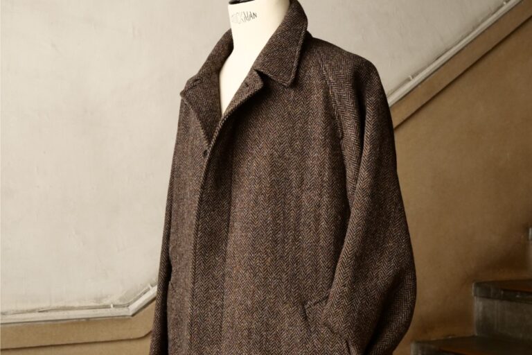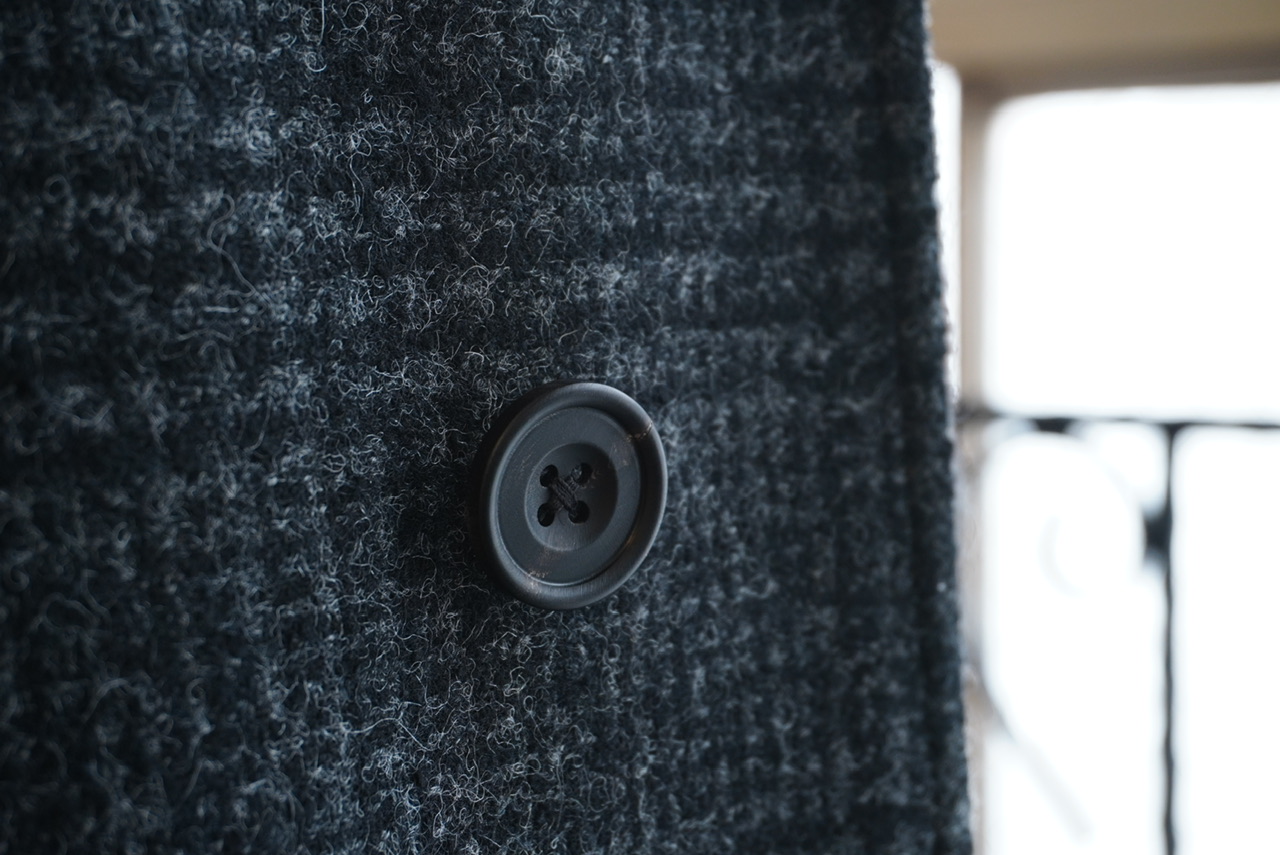 英国らしい上品な艶と深い風合いを持ち、コートに一層の存在感をもたらします。