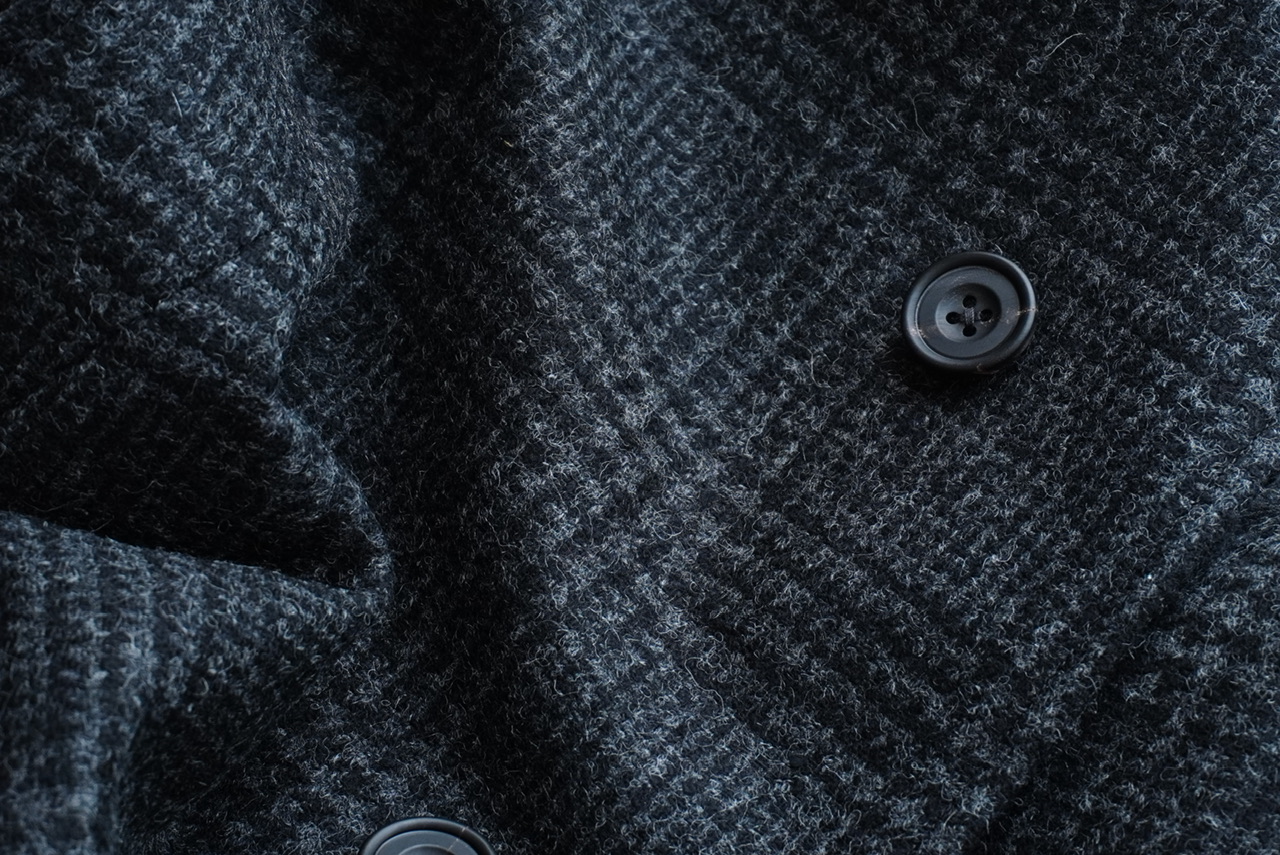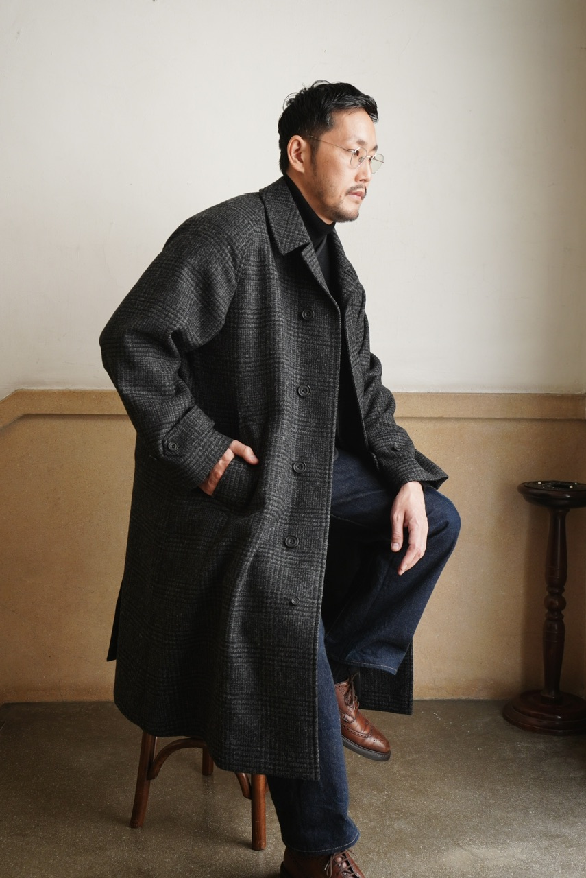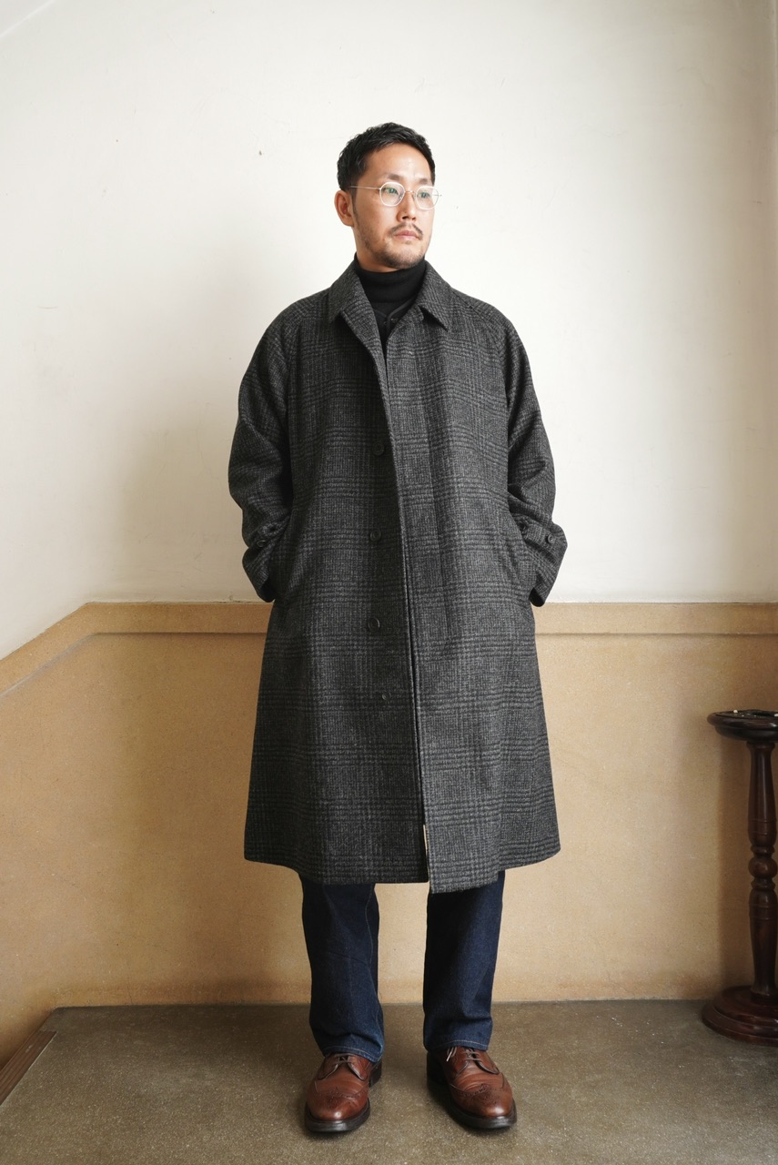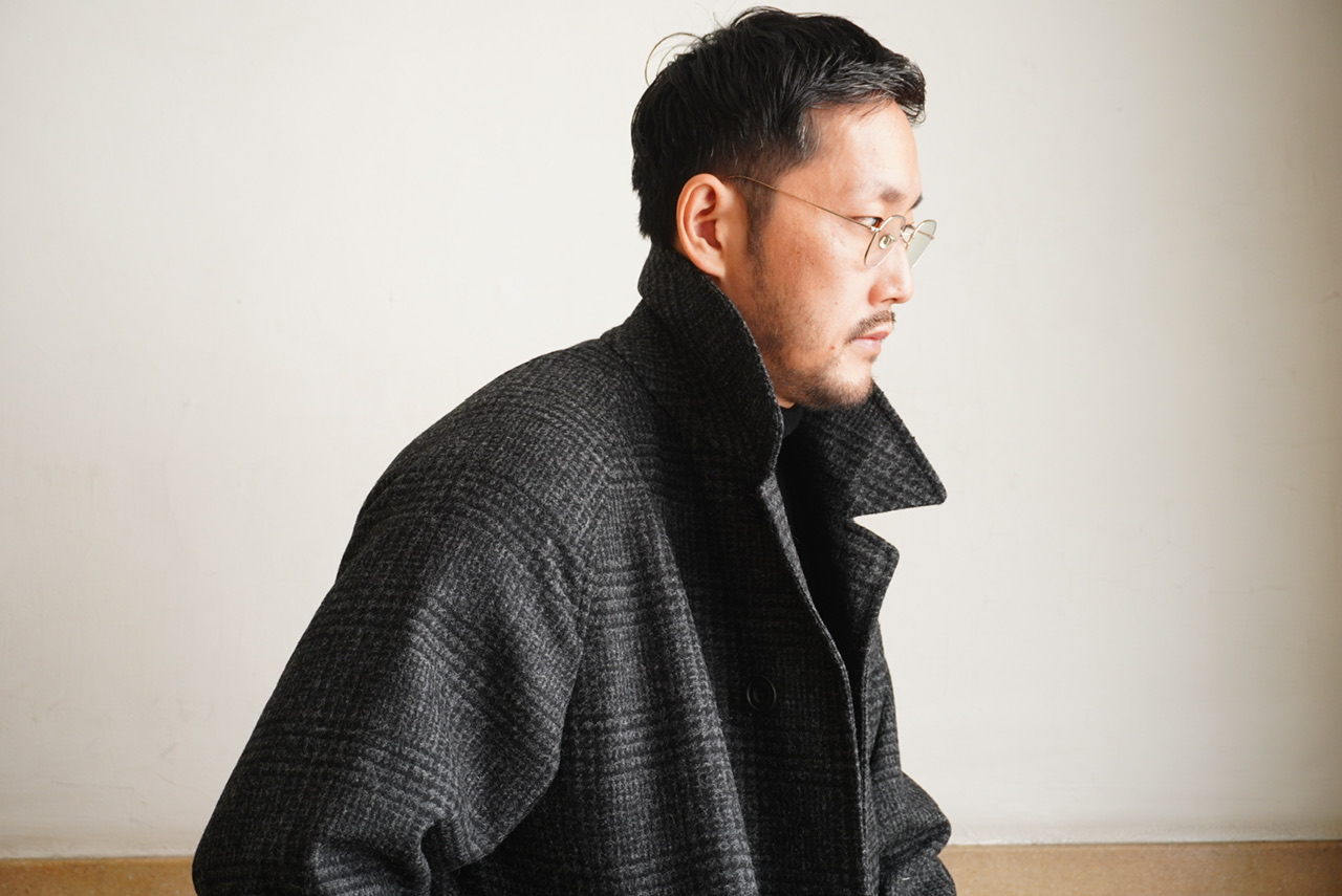 柄物のコートは久しぶりの展開ですが、チャコールグレーのグレンチェックであればクセがなく、