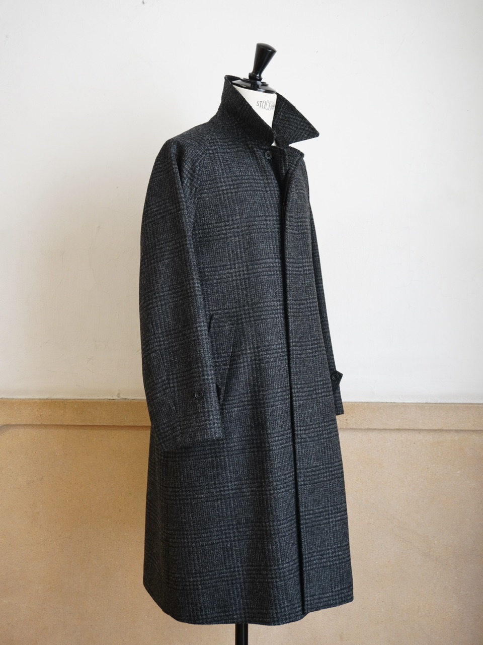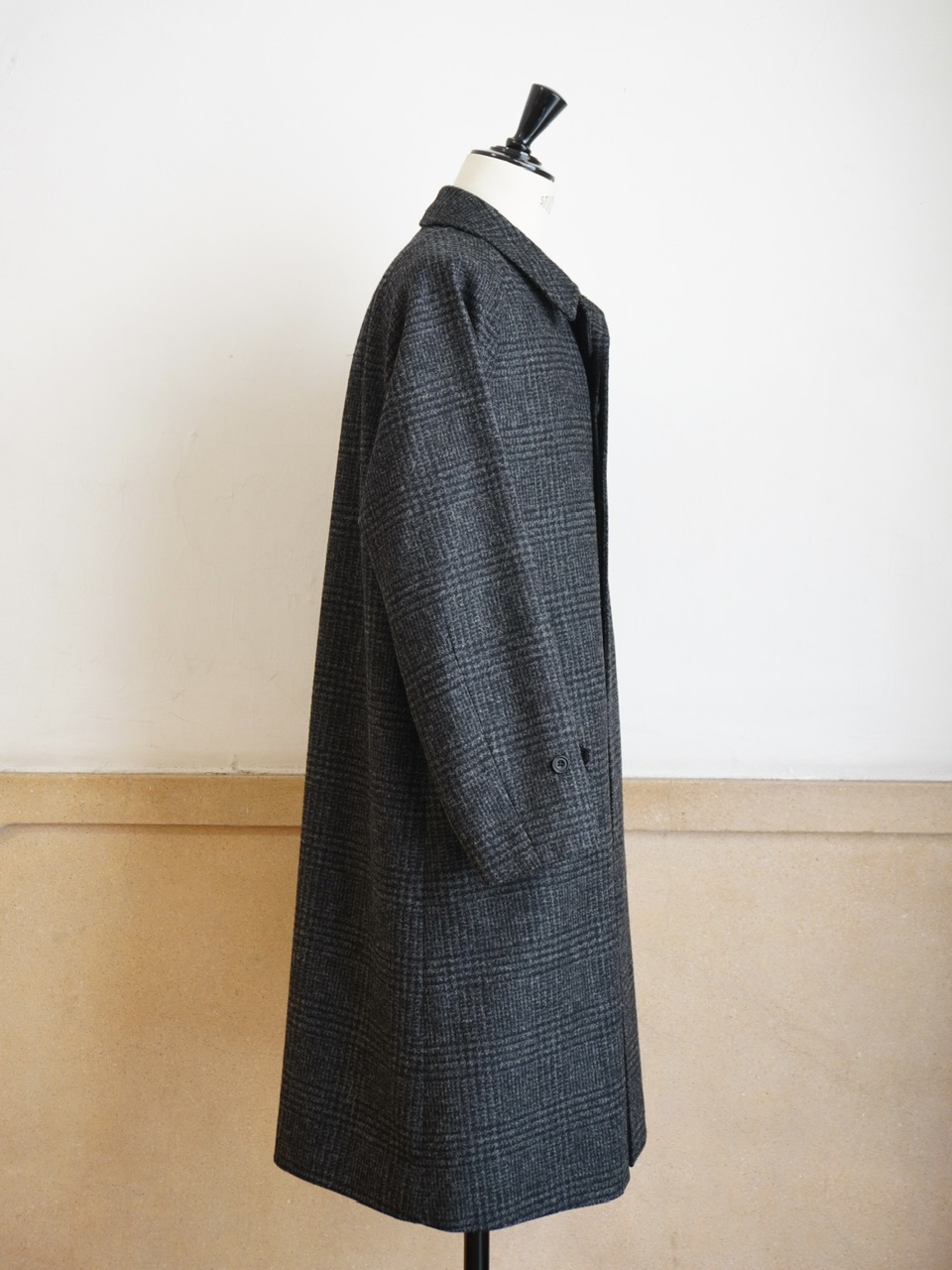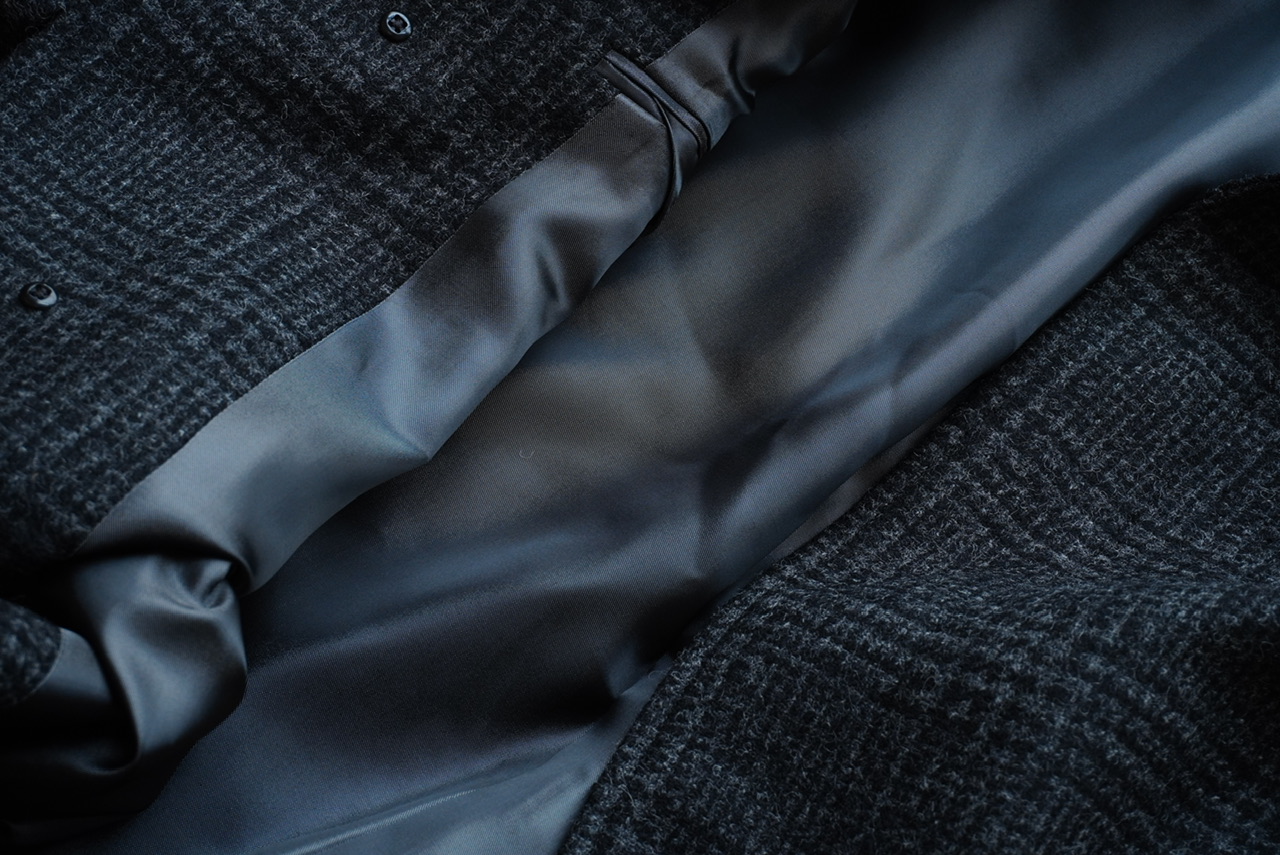 柄物のコートは久しぶりの展開ですが、チャコールグレーのグレンチェックであればクセがなく、