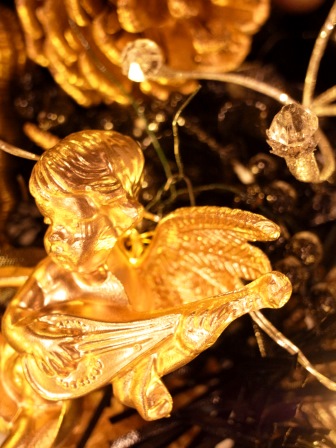 メインのリースには、様々なパーツと柔らかな光の電飾を巻き