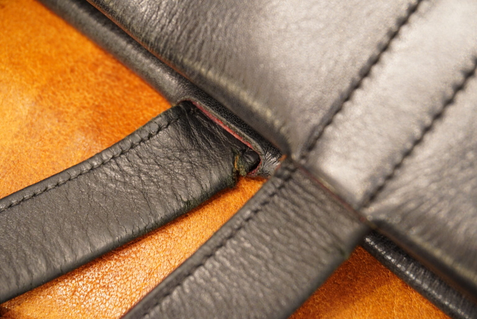 まずはハンドルボディを縫い止めているステッチを丁寧に解き、
