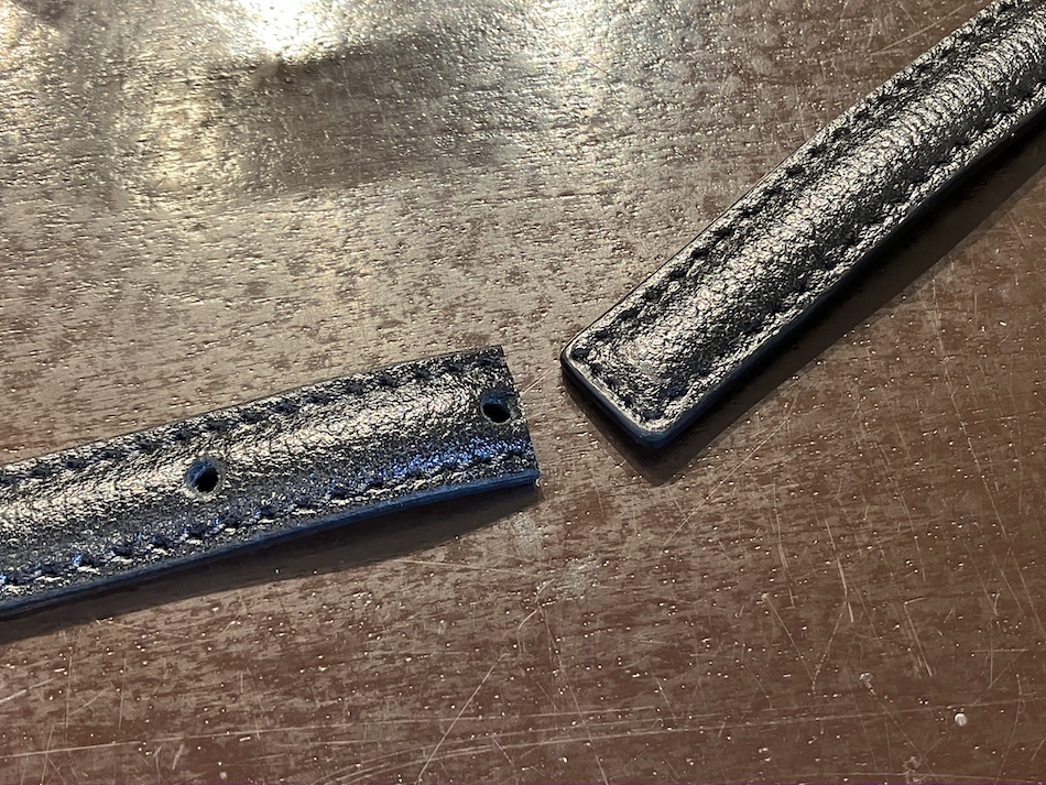 次に、カットしたストラップの剣先を縫い直し、形を整えます。