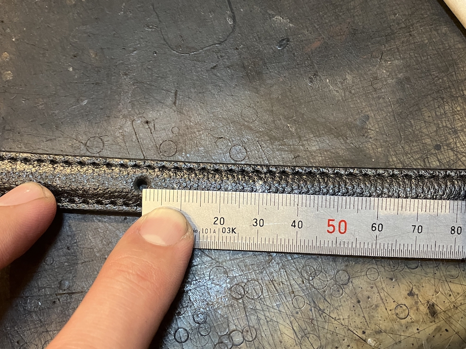 本来はもう数センチ長さを残すご希望でしたが、そうすると穴位置と剣先のバランスが崩れてしまうため、