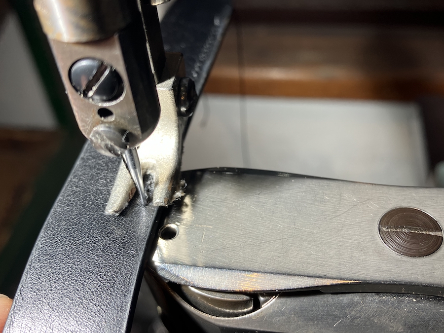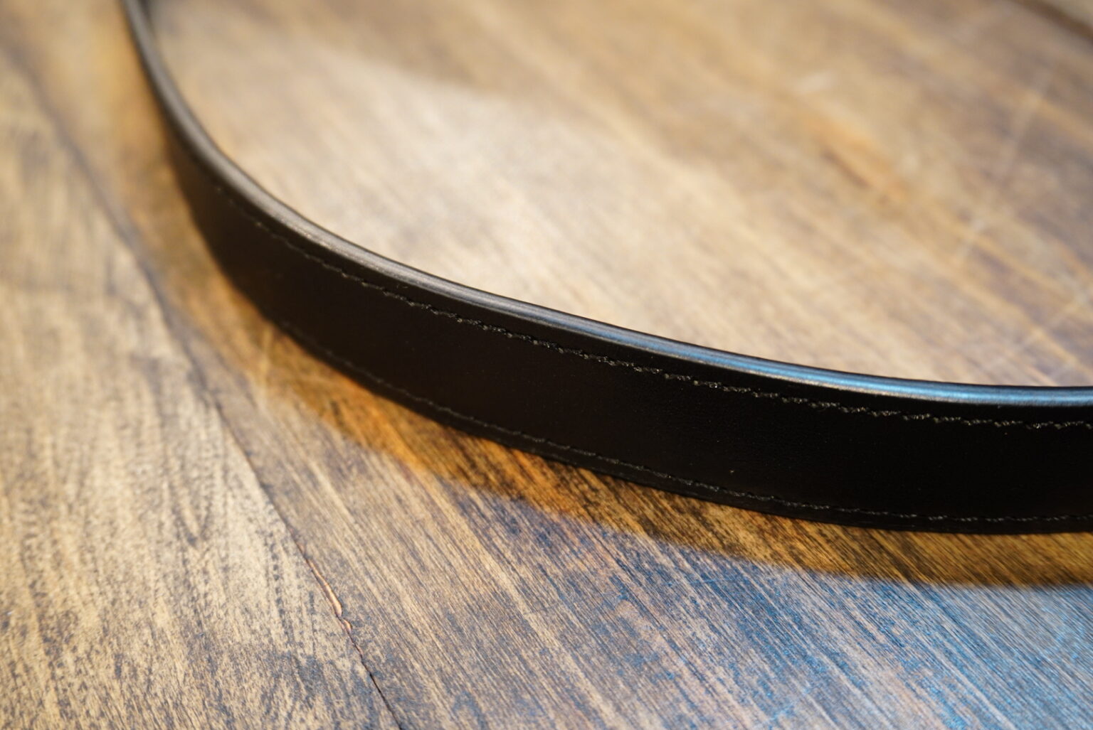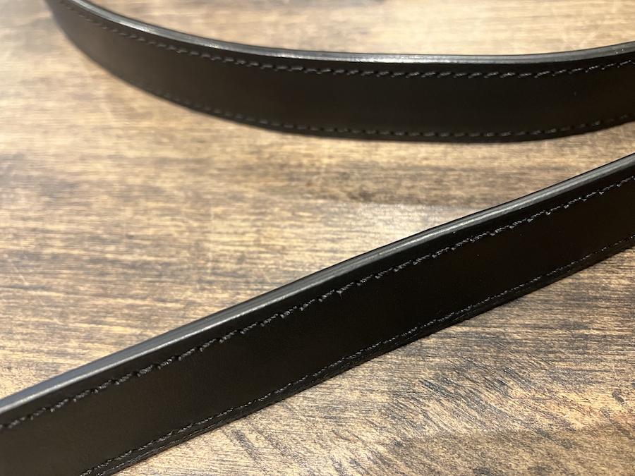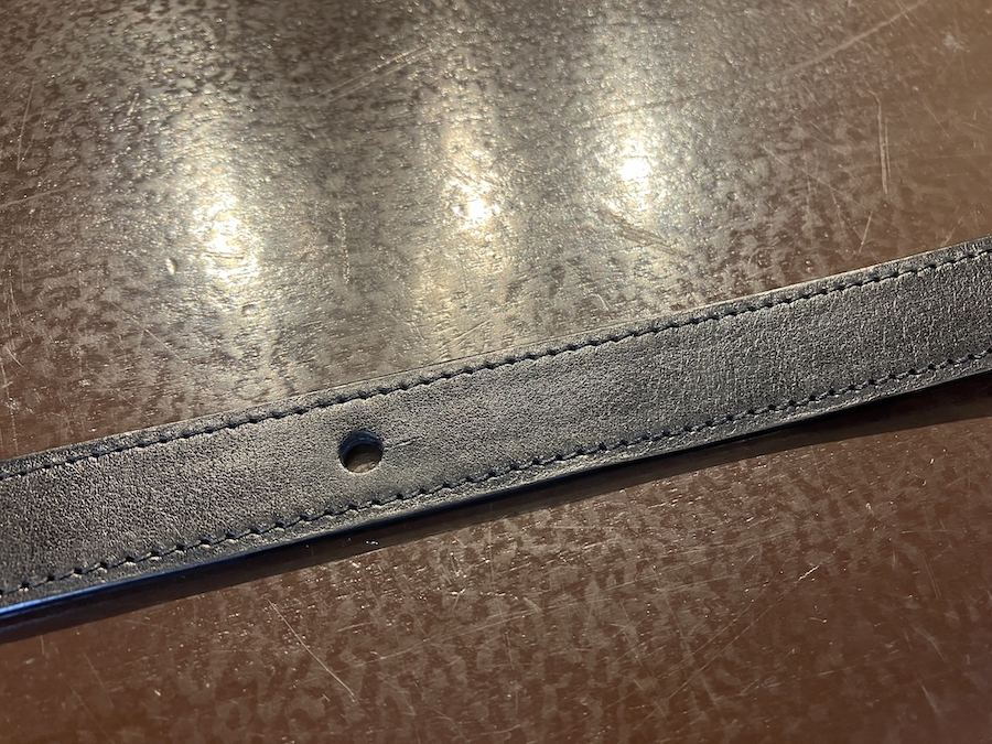 コバを着色し、丁寧に磨き上げた後、外周をぐるりと一周ステッチ。