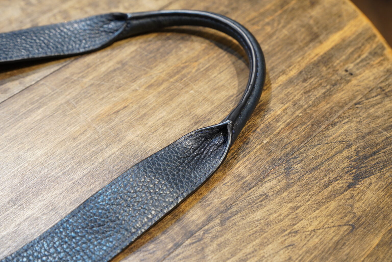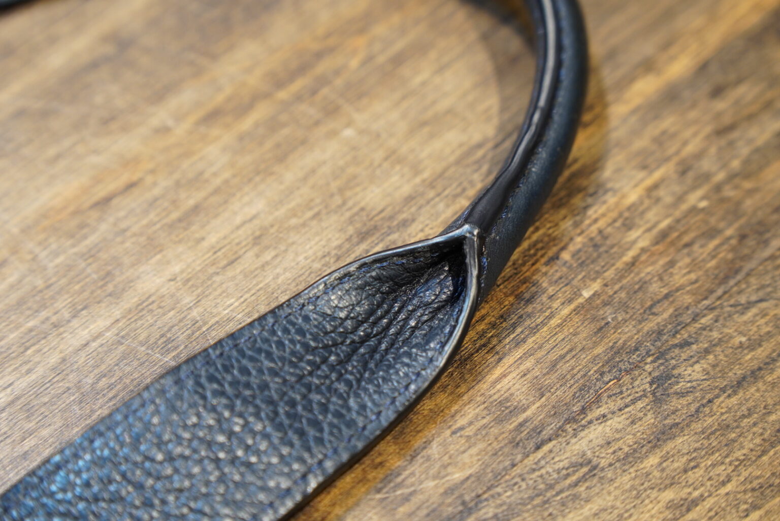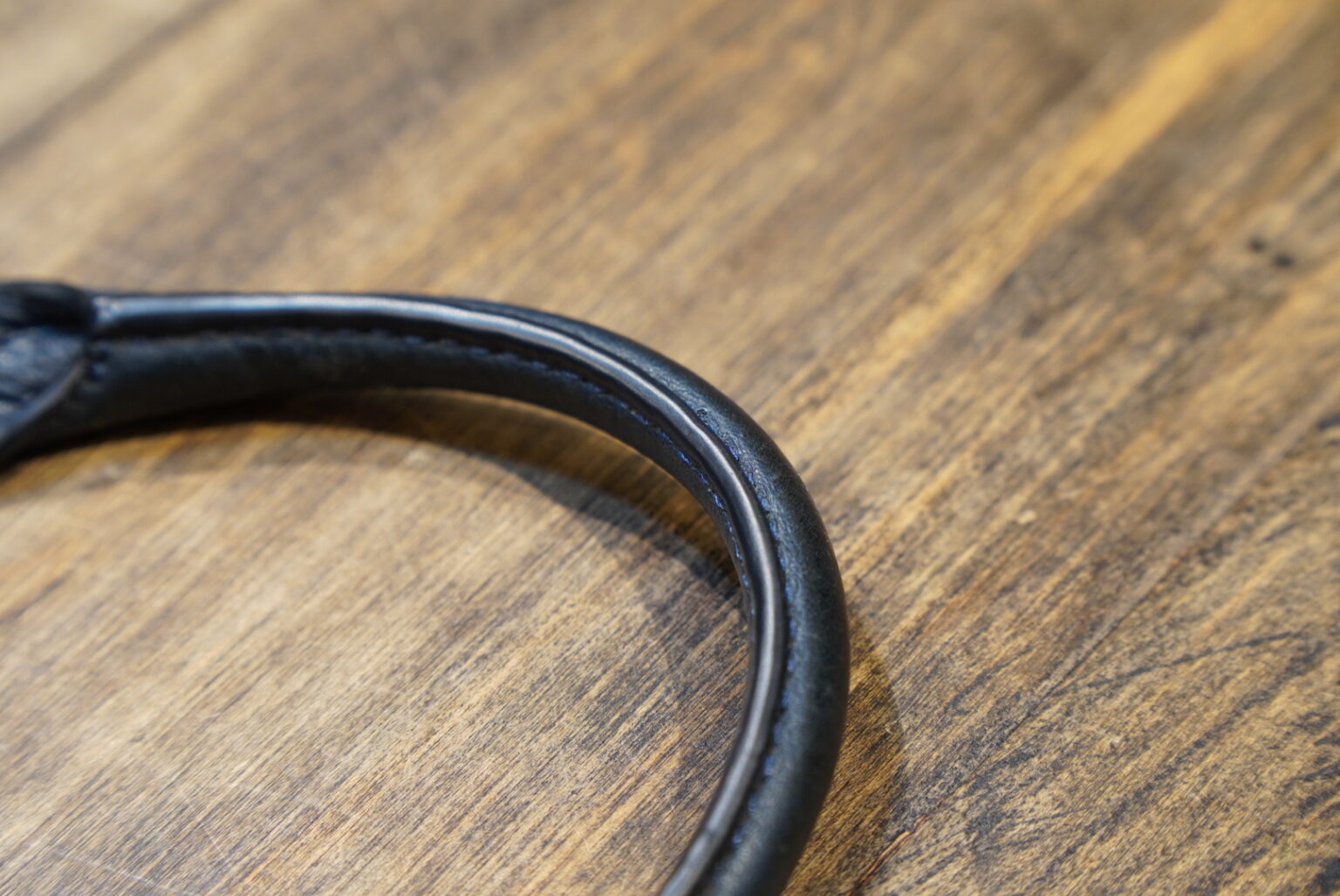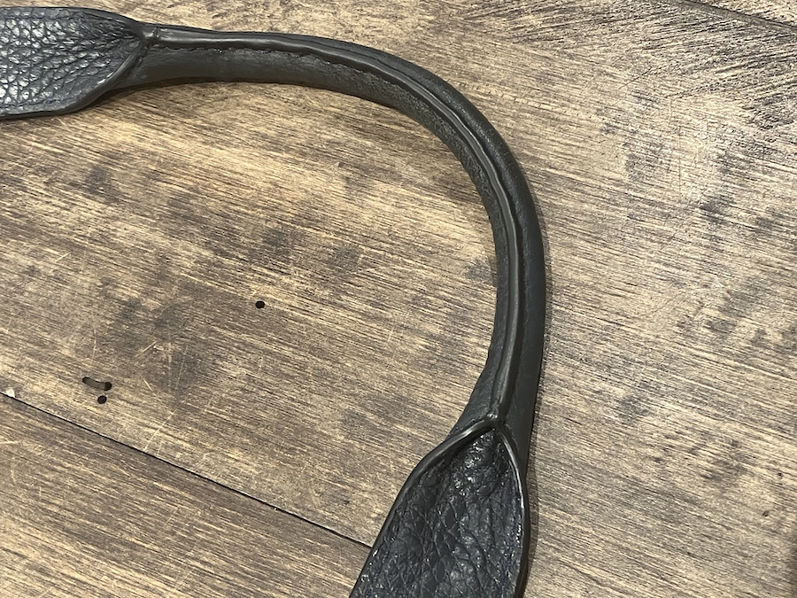 芯棒の素材を接着相性の良い革に変更し、さらに芯棒のエンド部分をハンドル本体に縫い付けて固定しました。