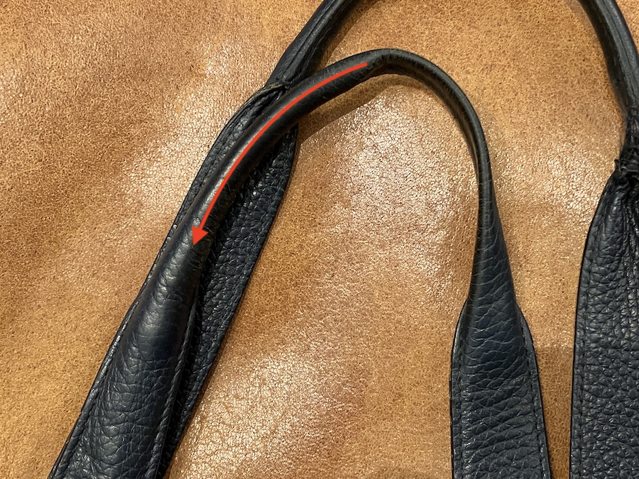 まずハンドルを外すために、トップラインのステッチを解きます。