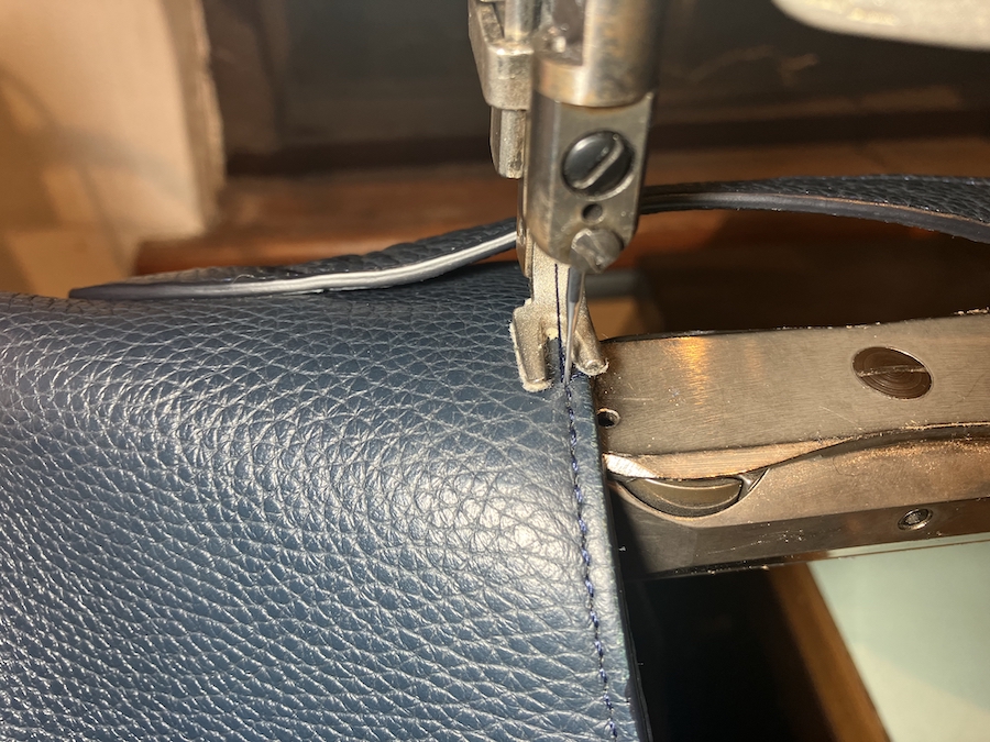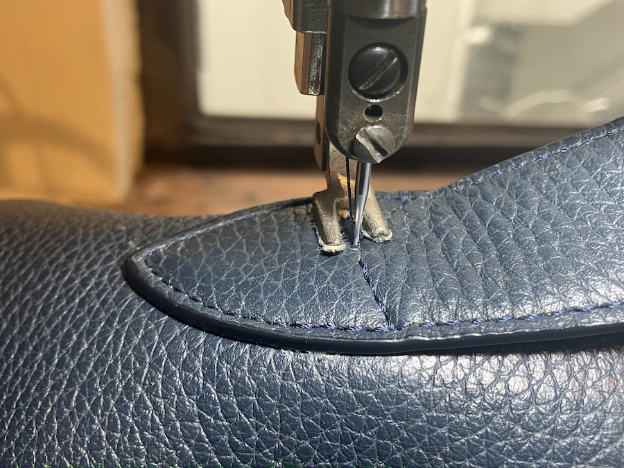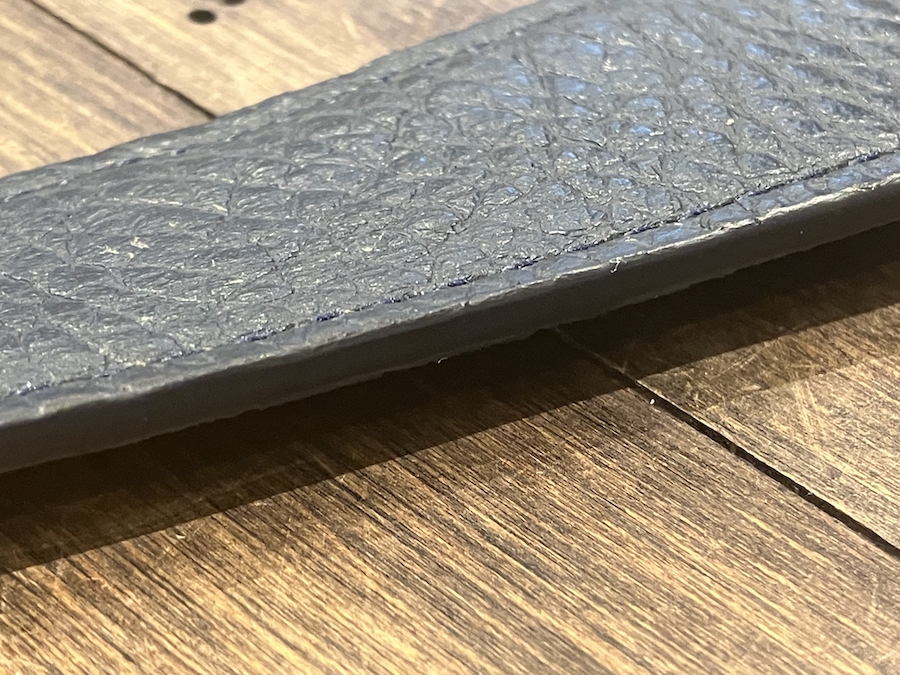 最後にコバの研磨と着色を行い、本体へ縫い付けます。