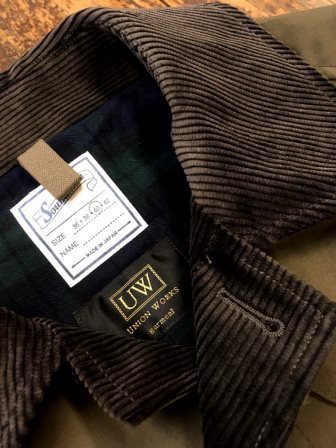 第2弾は袖裏にコーデュロイを当て張りを持たせました。こちらはこのコートのオリジナルとなったバーブアーのロングトレンチの仕様を模しました。