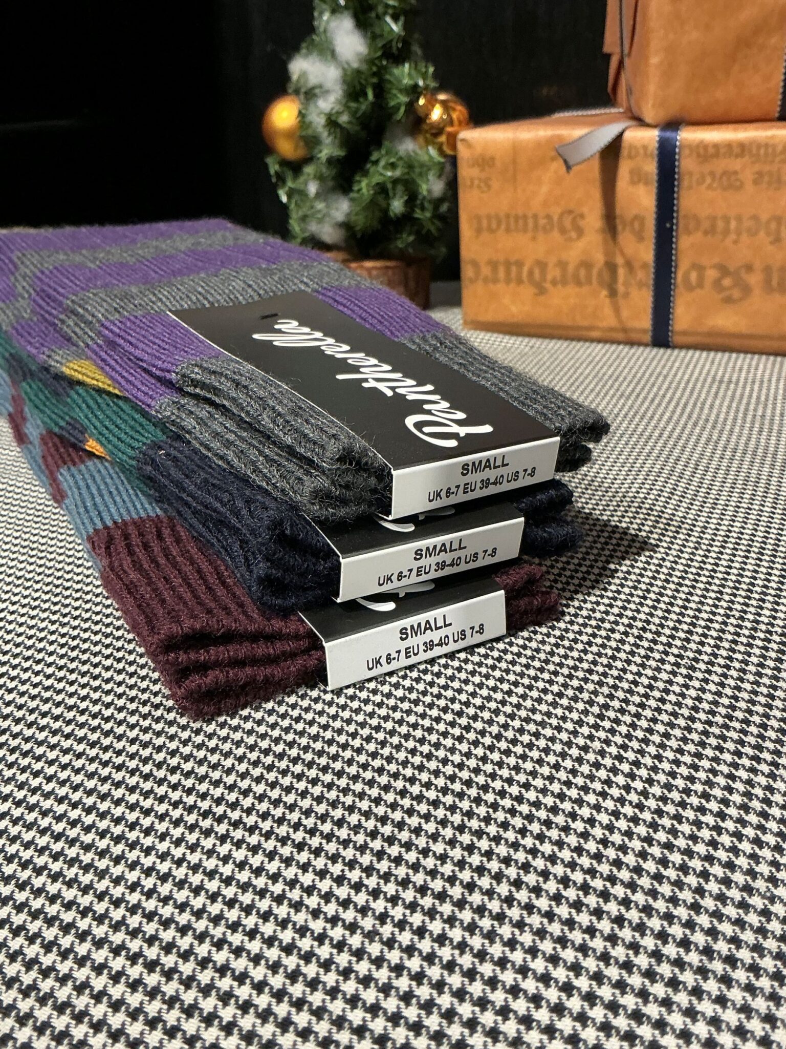 アイテム名は”Fairford”ボーダー柄のウールソックスです。