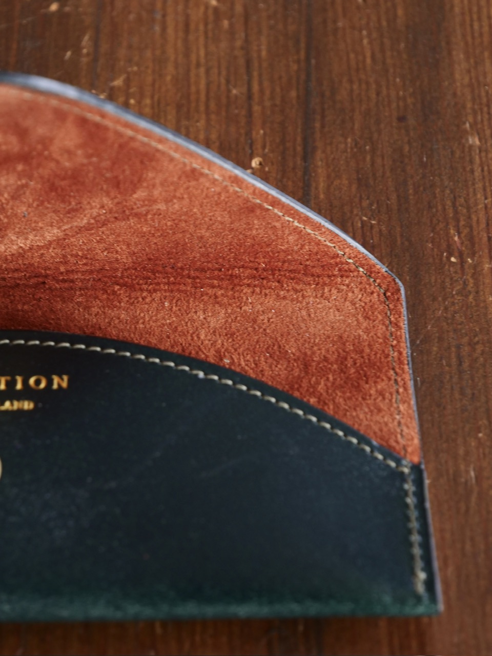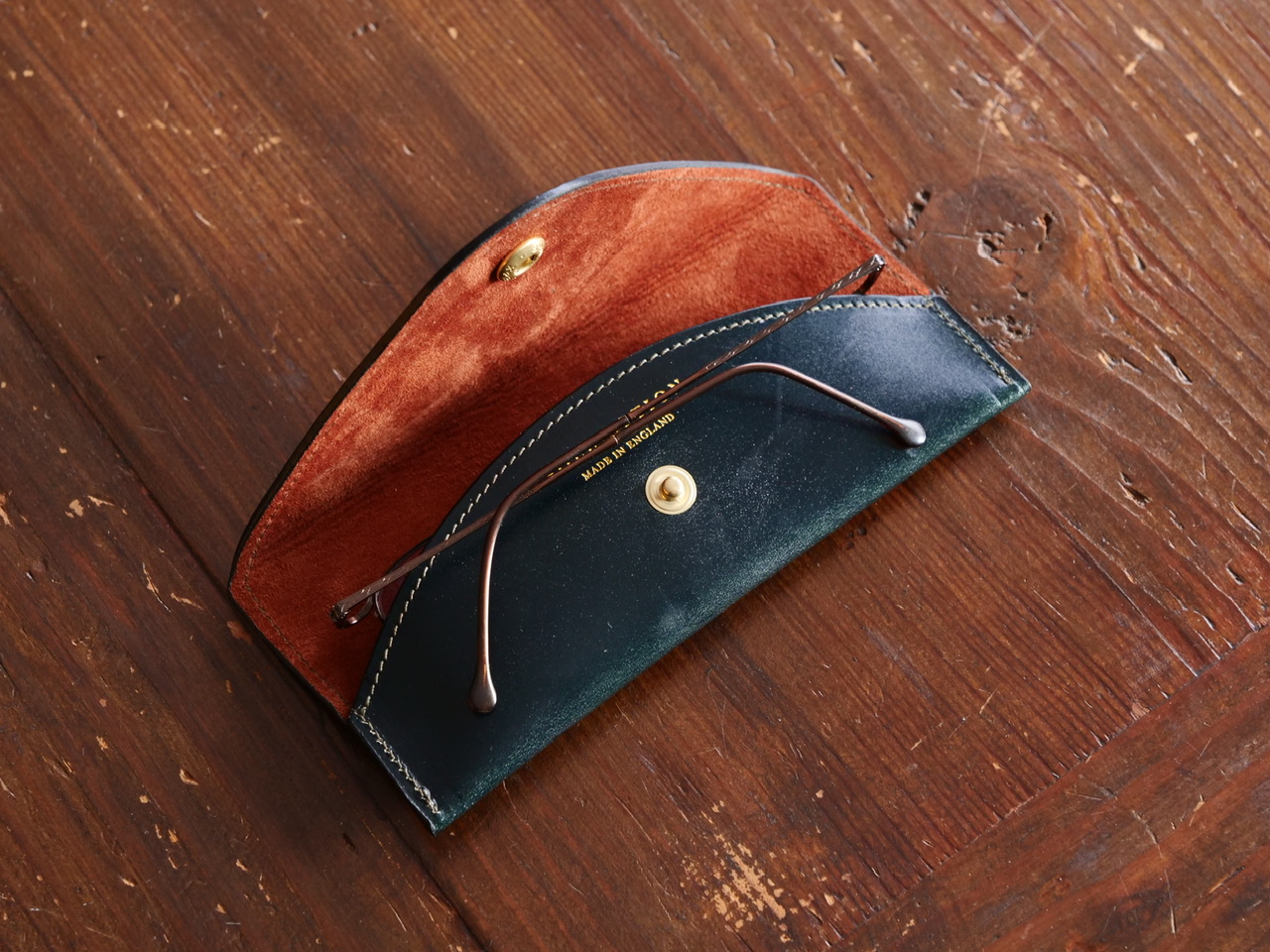 内側、メガネが触れる部分にはピッグスエードを。