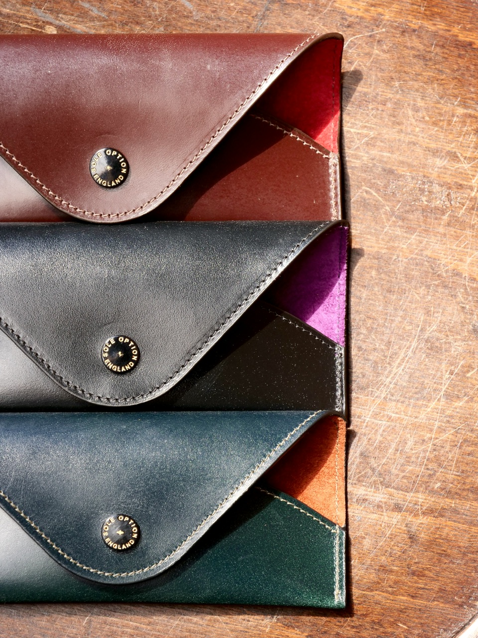 ボディには、英国タンナーによるブライドルレザーを使用。