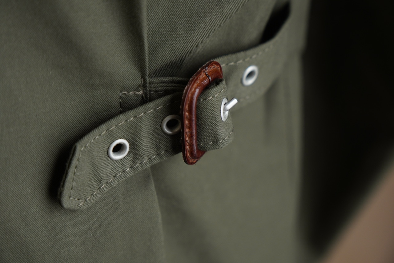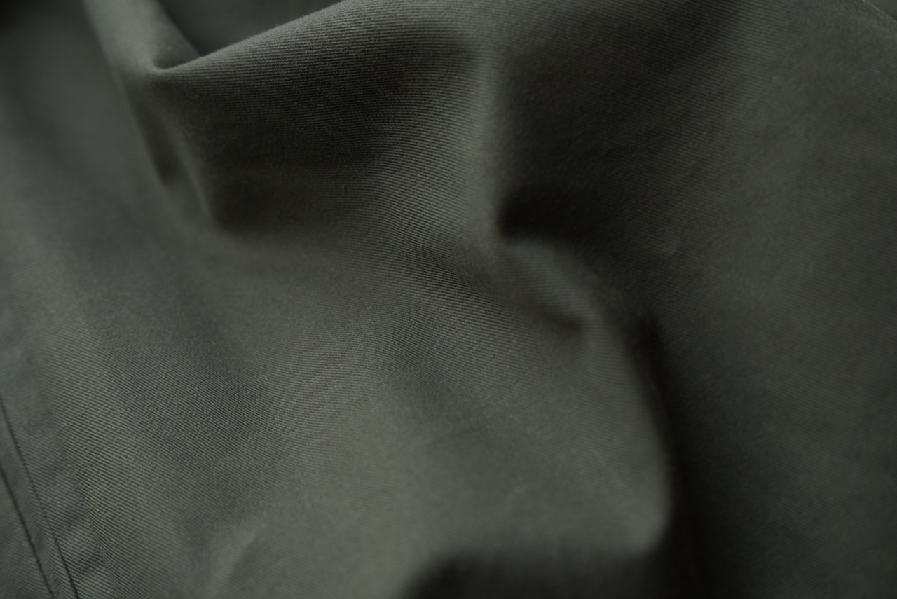 撥水・防風性を備えた機能的な生地でありながら、どこかグレンフェルクロスを思わせるような表情を持っています。