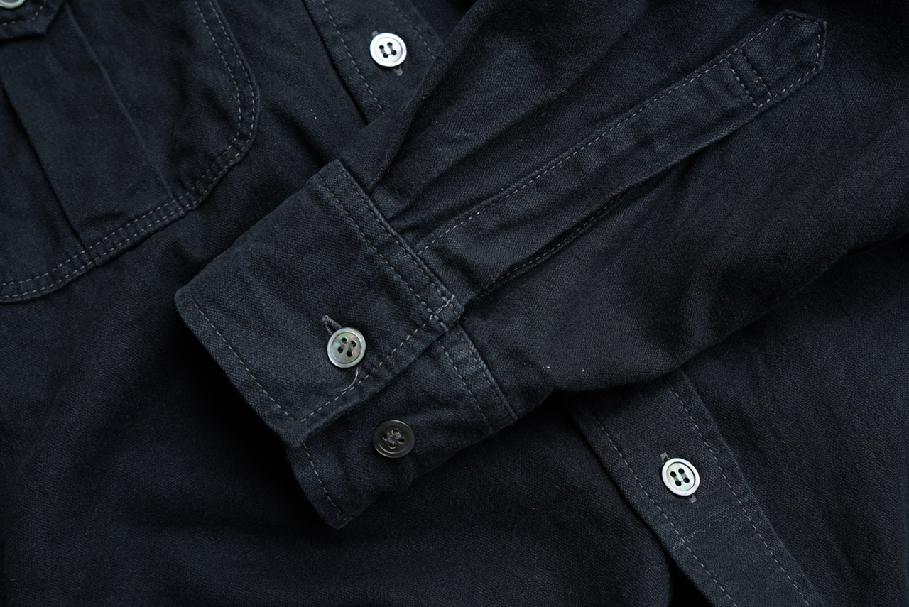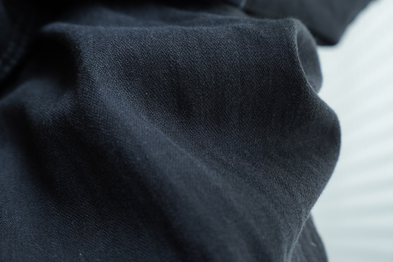 着込むほどに光沢が落ち着き、柔らかい質感になるため、黒でも重たく見えません。
