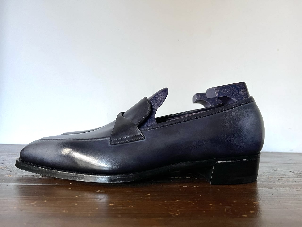 シューツリーもライニングの色と合わせてパープルを選択。