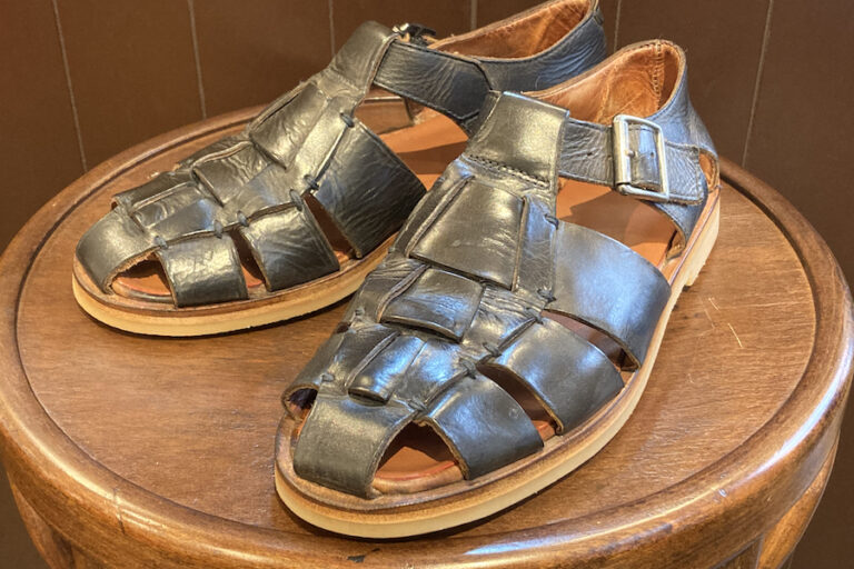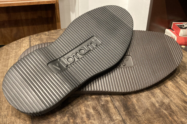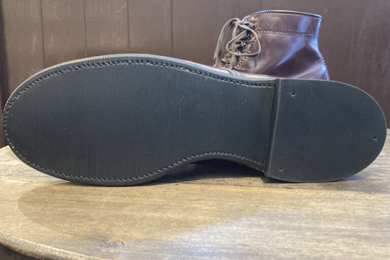 今回はウェルト、レザーミドル、ラバーミドルまで縫い止めて、アウトソールは接着で仕上げました。