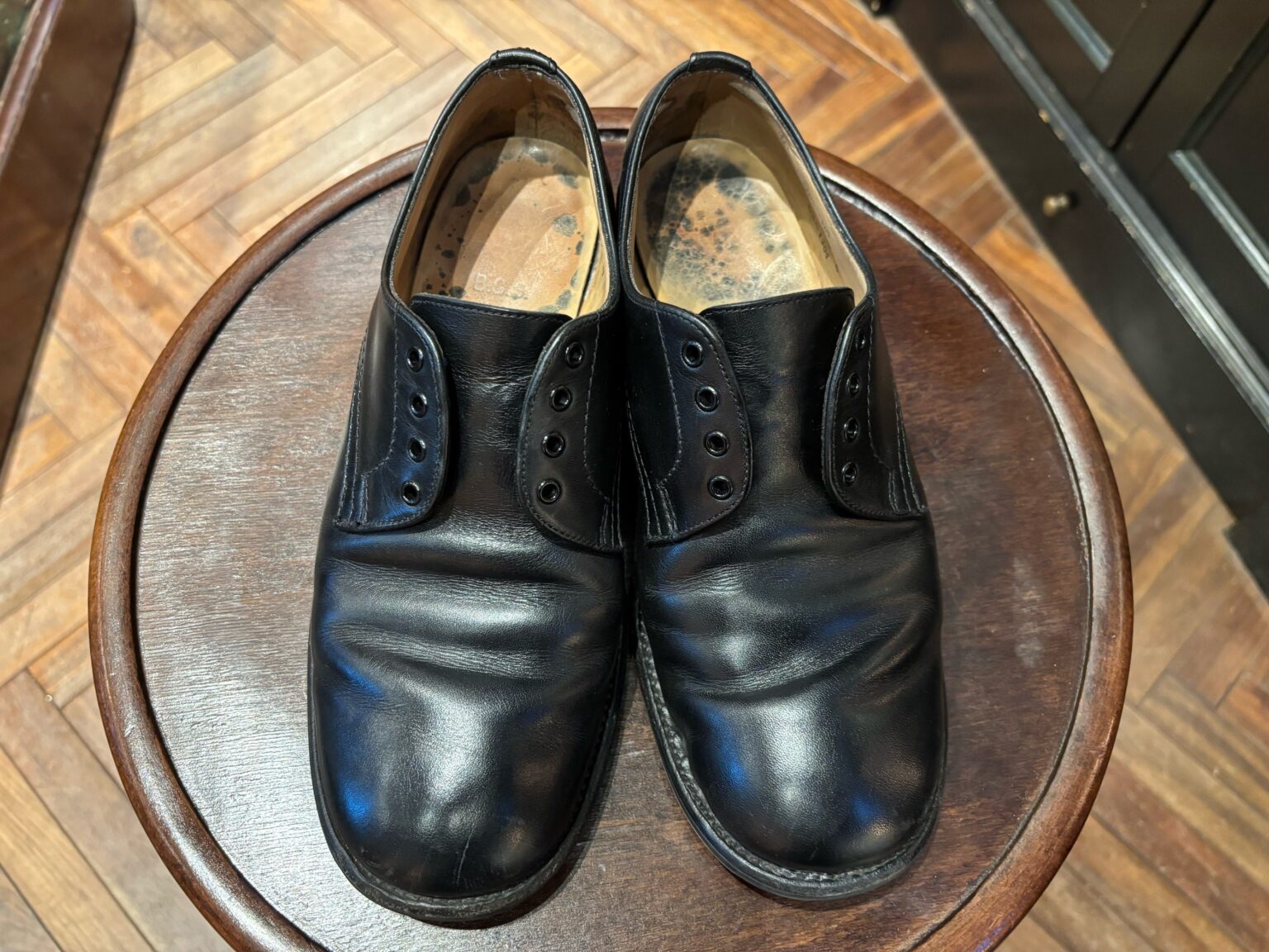「B.G.S. COLLECTION」と呼ばれる、イギリス軍の重火器を扱う兵士に支給されていた靴をベースに作られたシリーズのプレーントウモデルです。