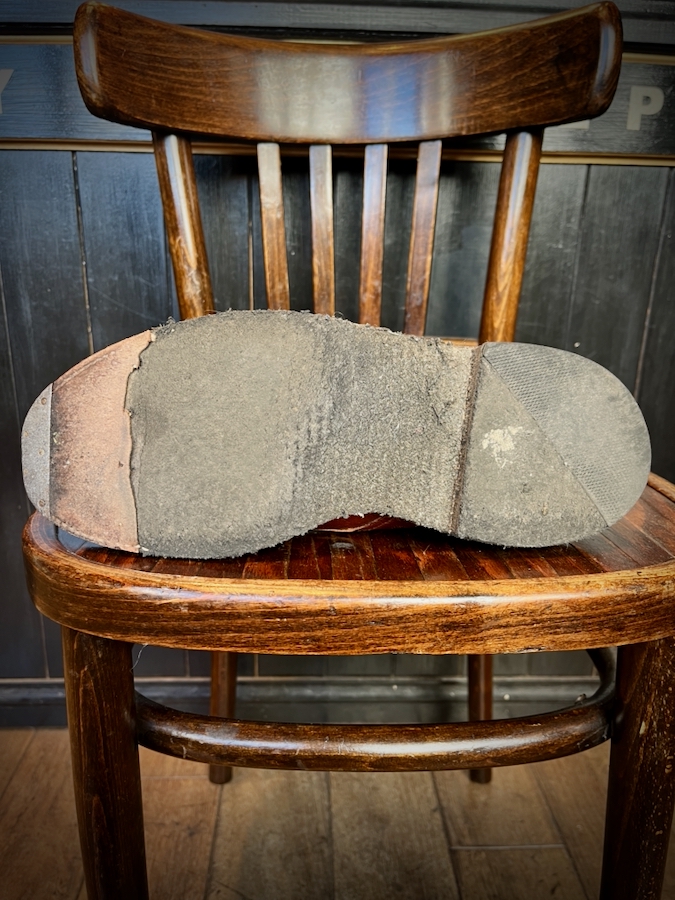 ソール全体にダメージがあるので今回はオールソール交換のお修理。
