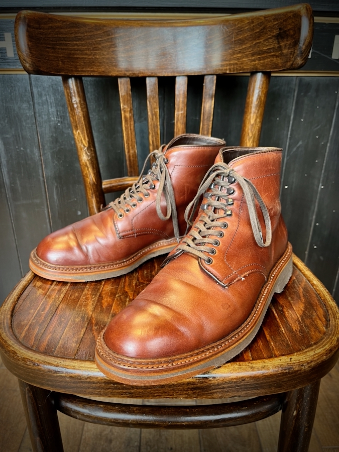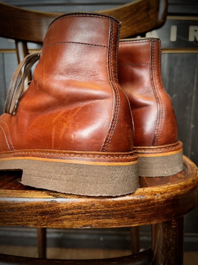今回お修理するのはオールデンのレースアップブーツ。