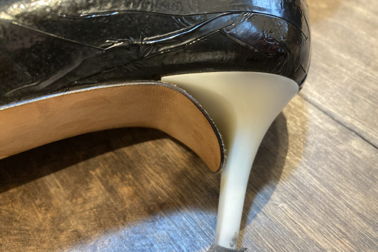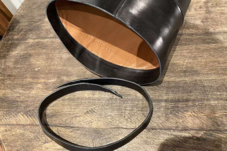 脱ぎ履きの際に革が剥がれてこないようにします。