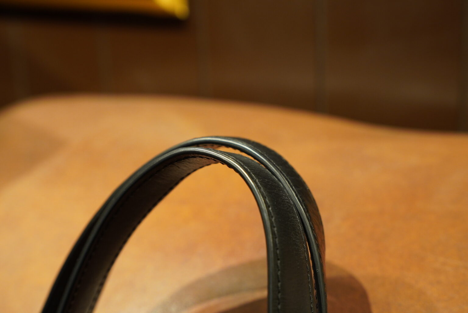 取り外した持ち手は再接着を行い、コバを整えて仕上げます。