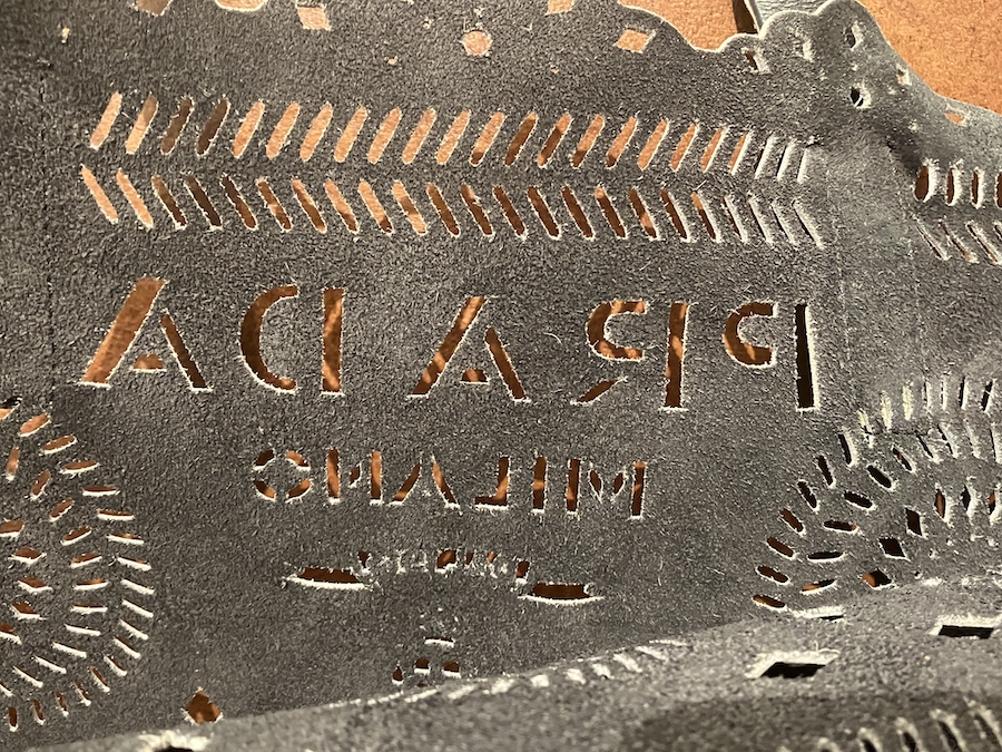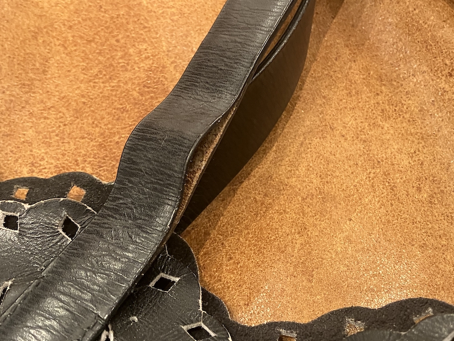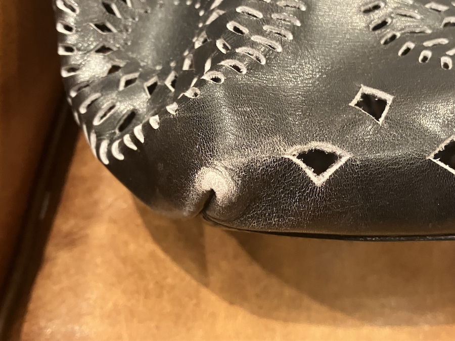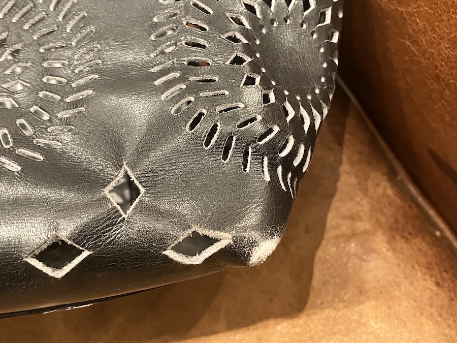 ライニング(裏地)がなく、革を切り抜いてさまざまな模様を表現したデザインで、