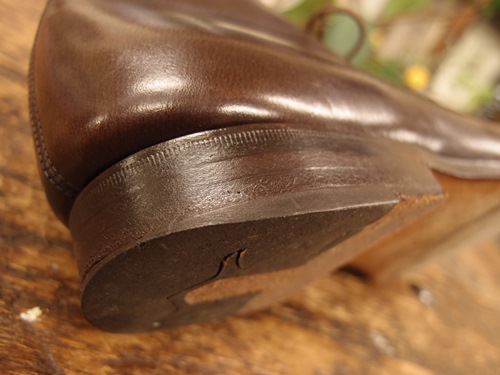 これがダヴテイル、化粧釘がたくさん打ってありとてもイギリスらしいヒールパーツです。