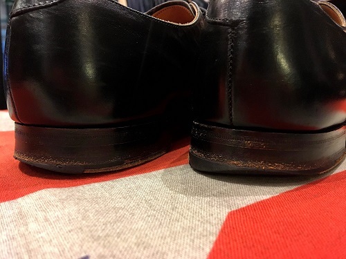 つま先はウェルトの裏側が見えるくらい大きくすり減っています。