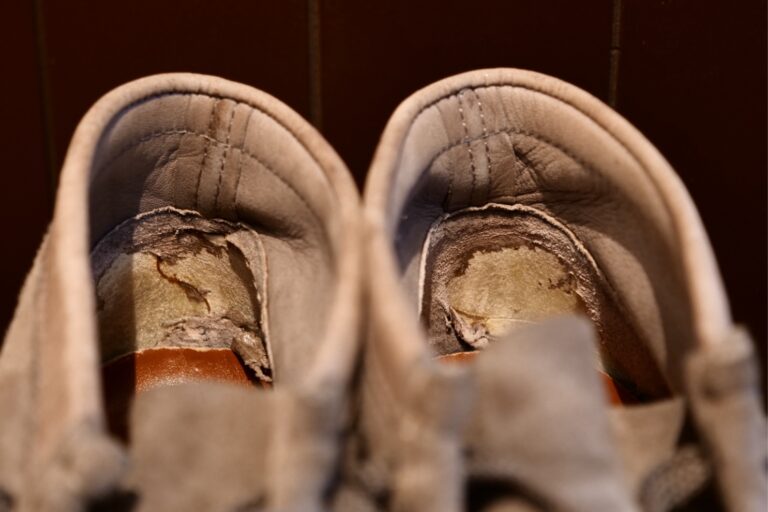 長年の使用により、右足のプルループがステッチ目から裂けてしまっていました。