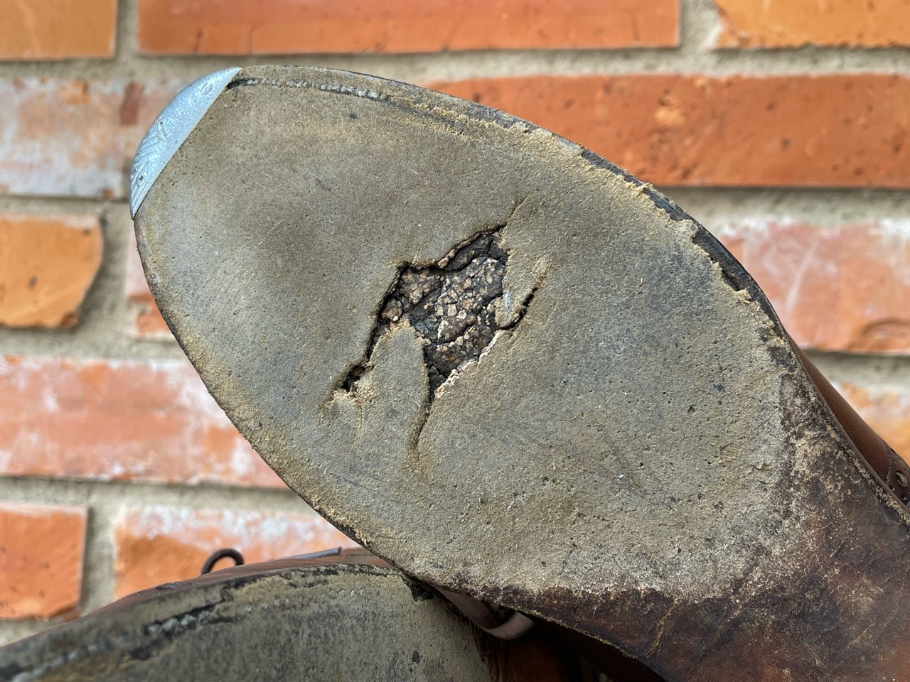 ソールには大きな穴が空き、