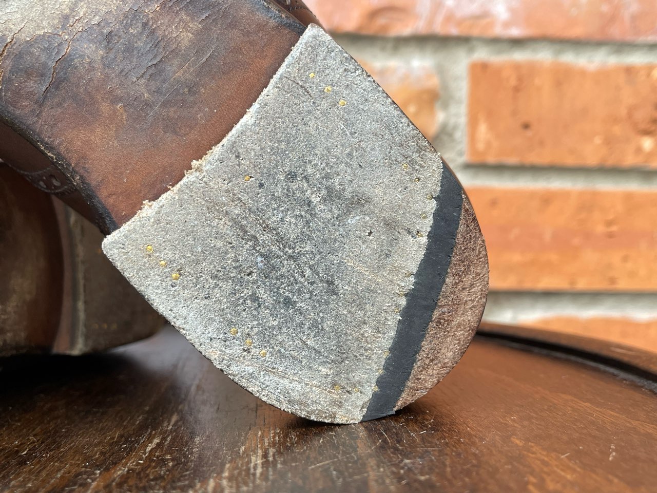 ヒールは積み革まですり減っています。