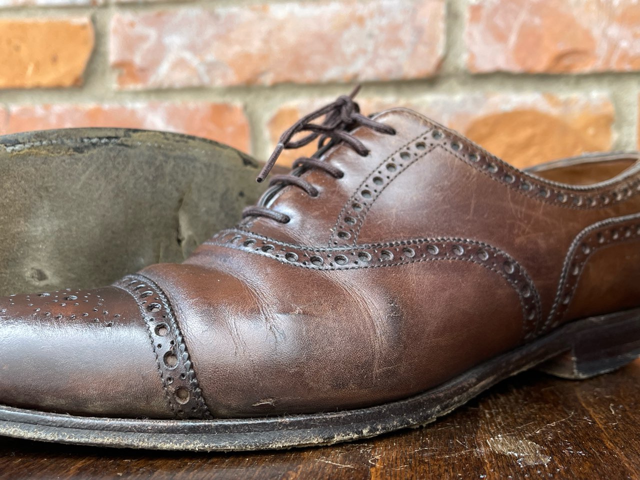 日々ローテーションで履いている靴ですと、急な雨に打たれこのような状態になることも少なくないかと思います。