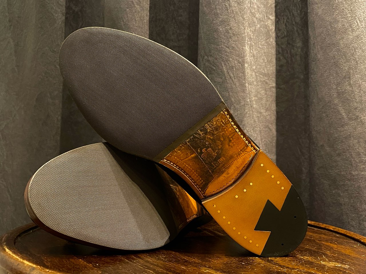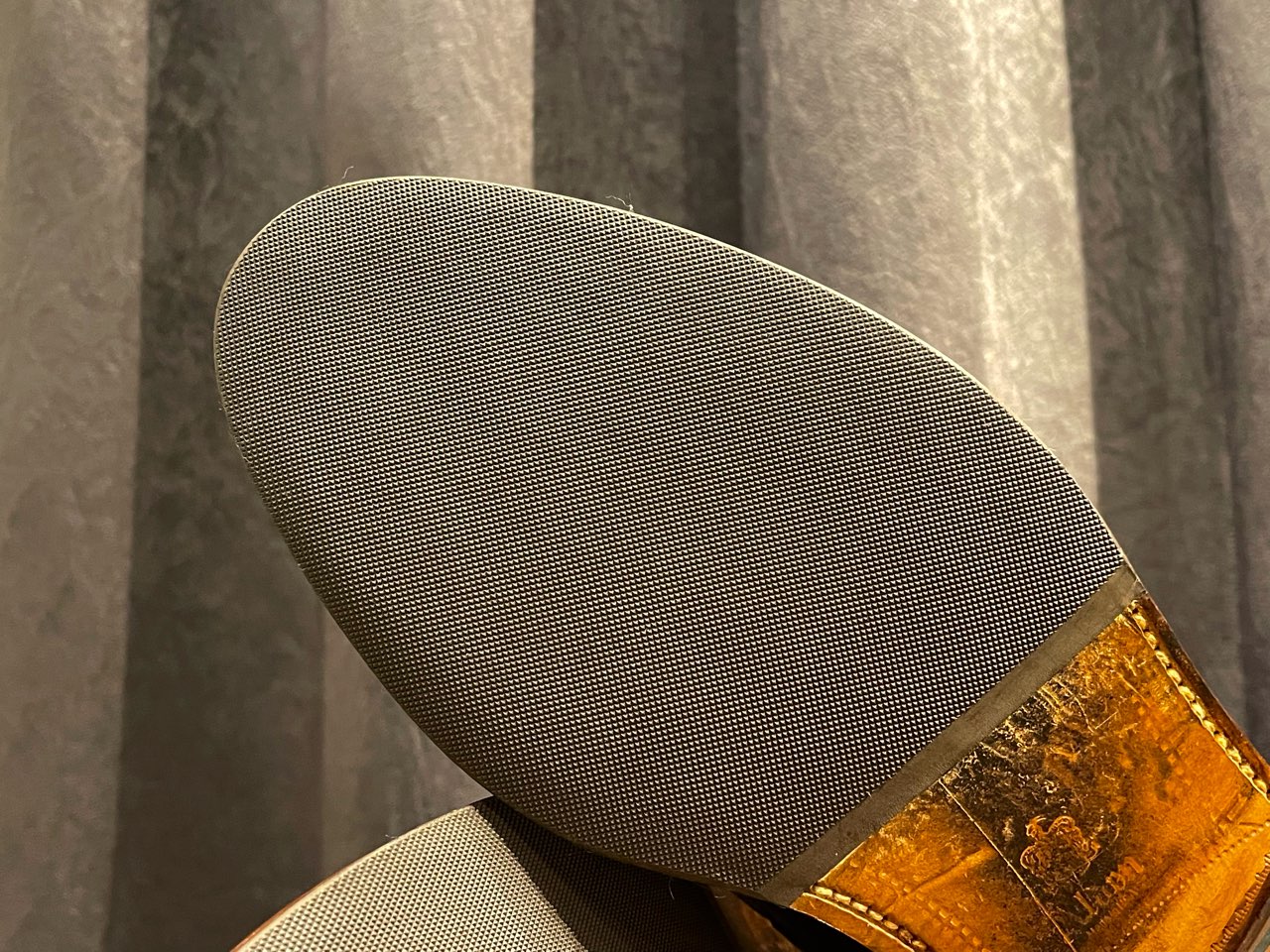 つま先部分はレザーで厚みを戻したのちにハーフラバーソールを貼っているので、厚みのバランスが取れていますね。