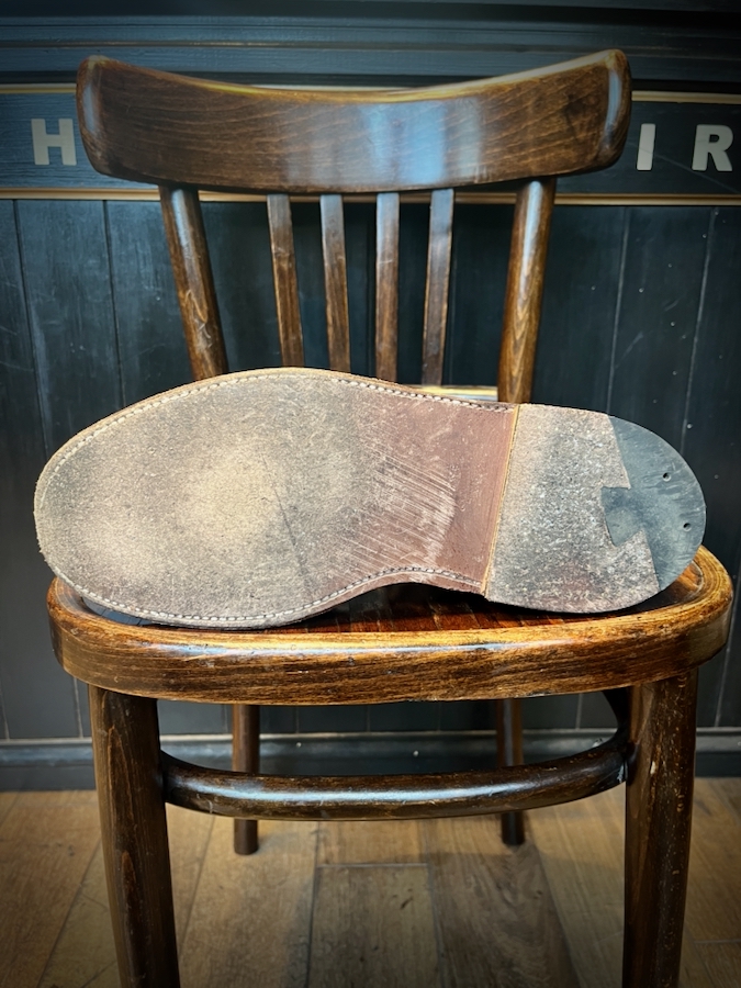 ウェストにAldenの刻印が薄く覗いているオリジナルのオイルドソール。