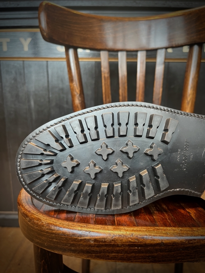 ソールは黒色ですが積み上げやウェルト、ミドルソールのブラウンと調和して