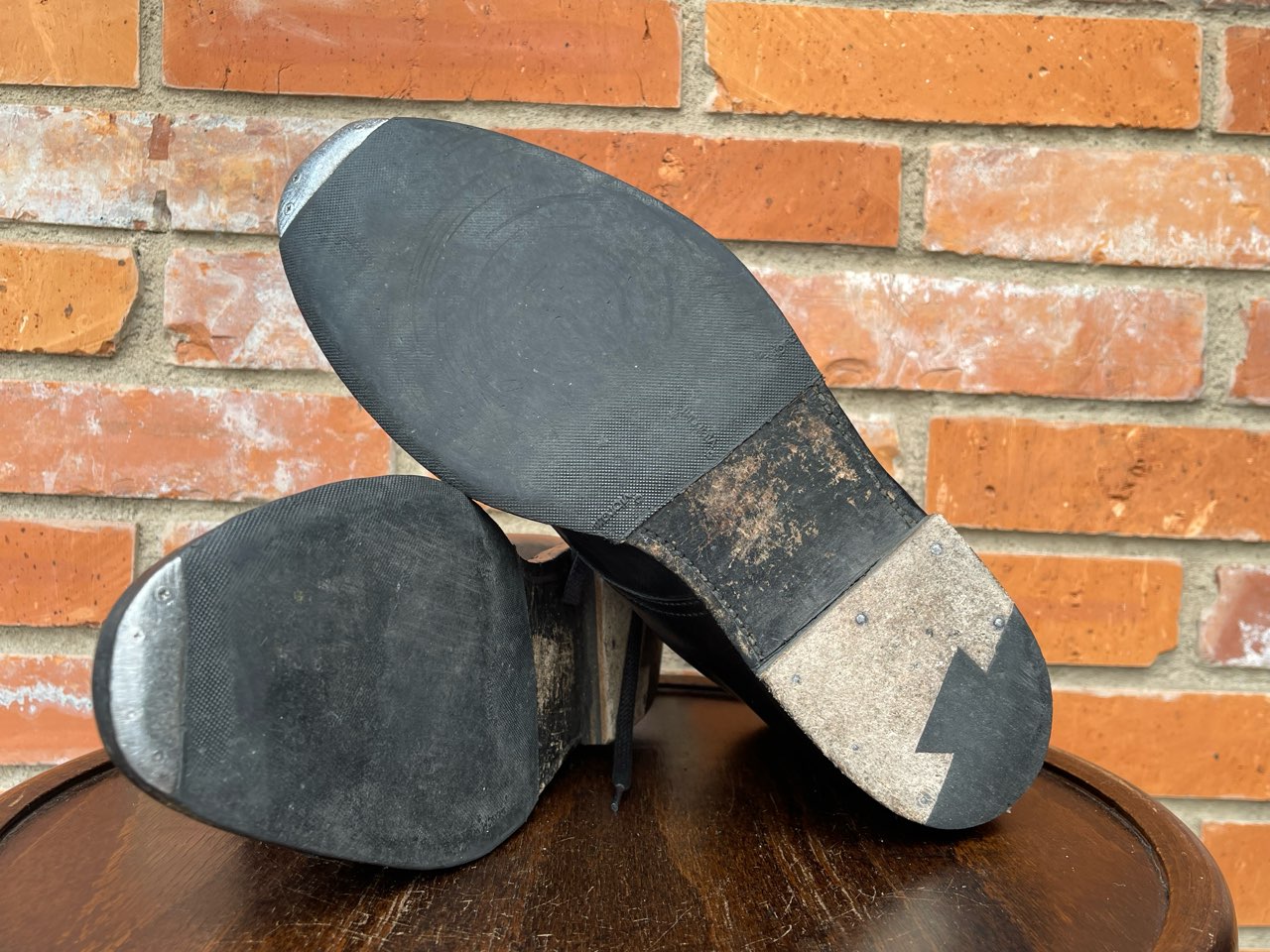 ヒールも削れ積み上げのラインも歪み、過去の補修跡も見えるような状態に。