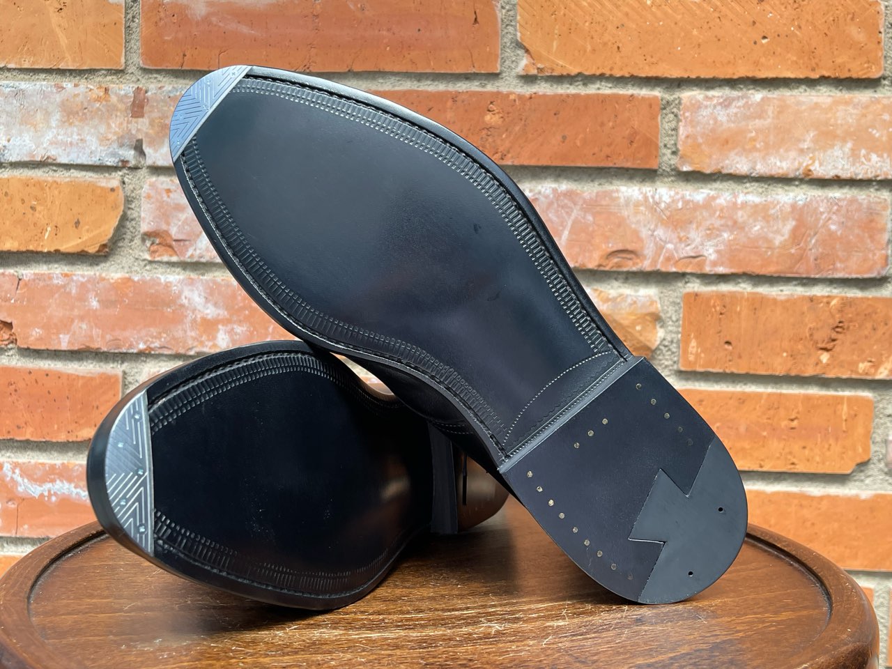 全体的に見ても黒々しく自然なツヤになり、紐も交換したことで引き締まった印象になりました。