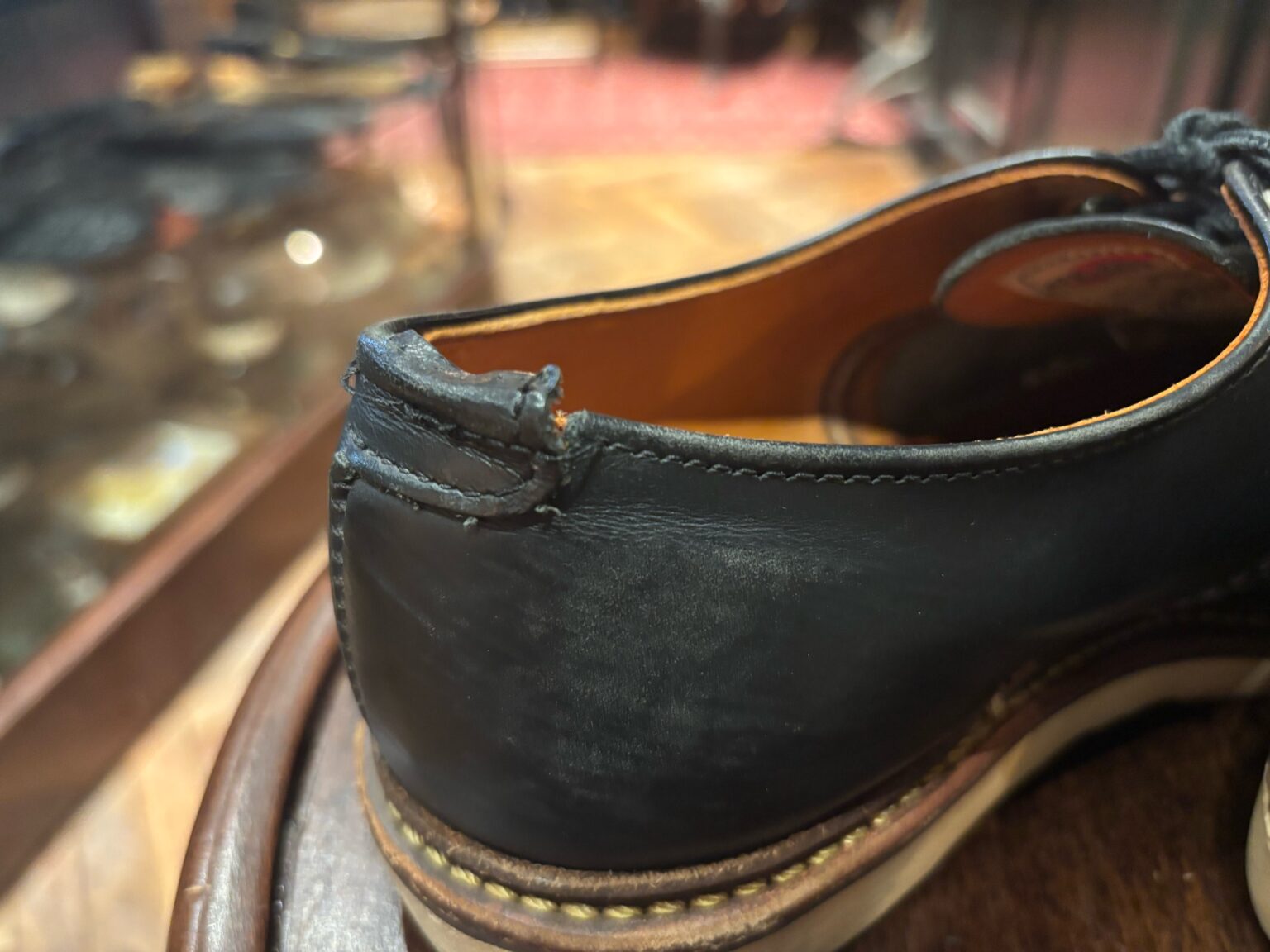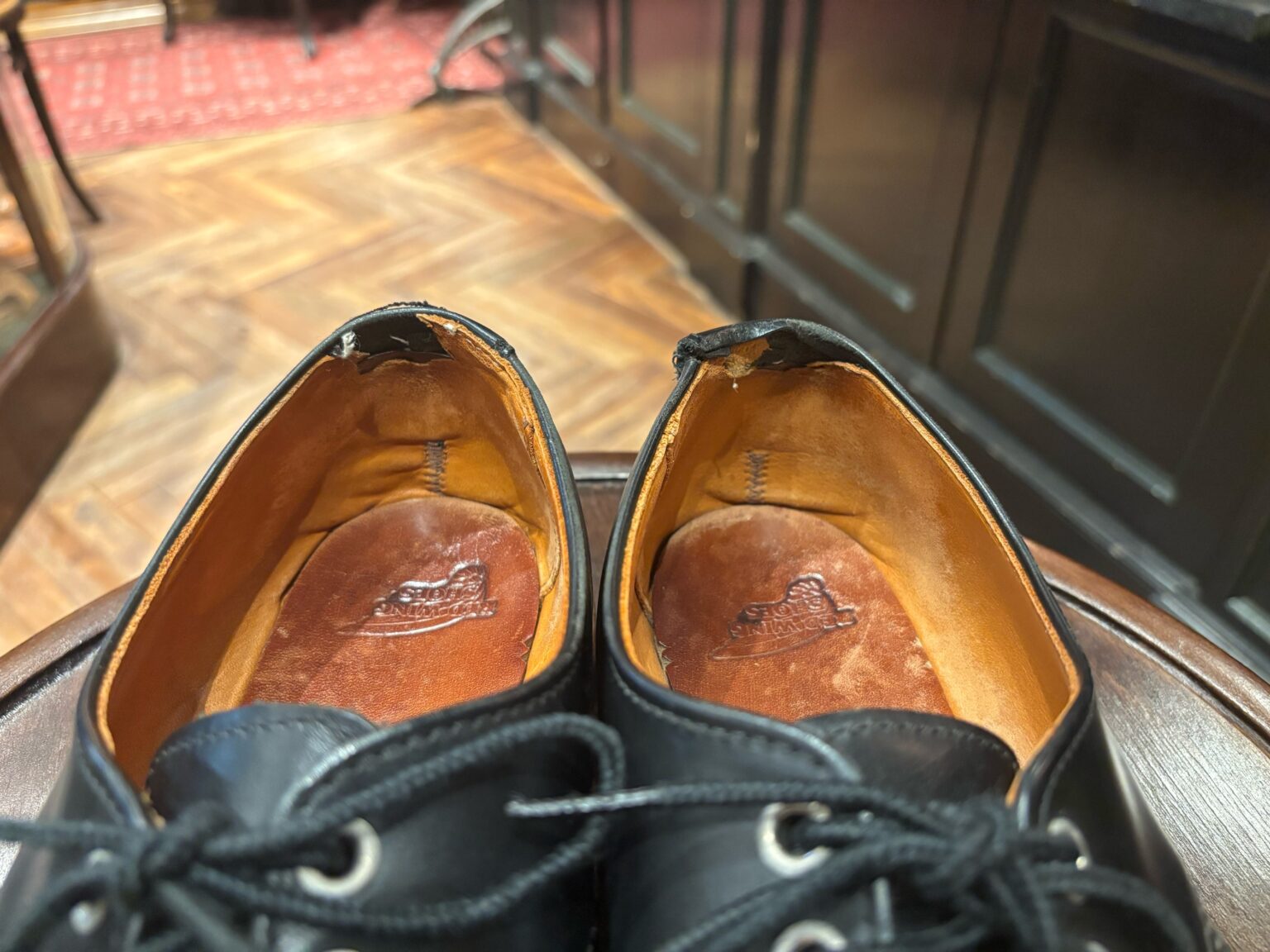 カスタムオールソール、トップラインとカウンターライニングの補修、そしてアッパーケアという内容で進めさせていただきます。