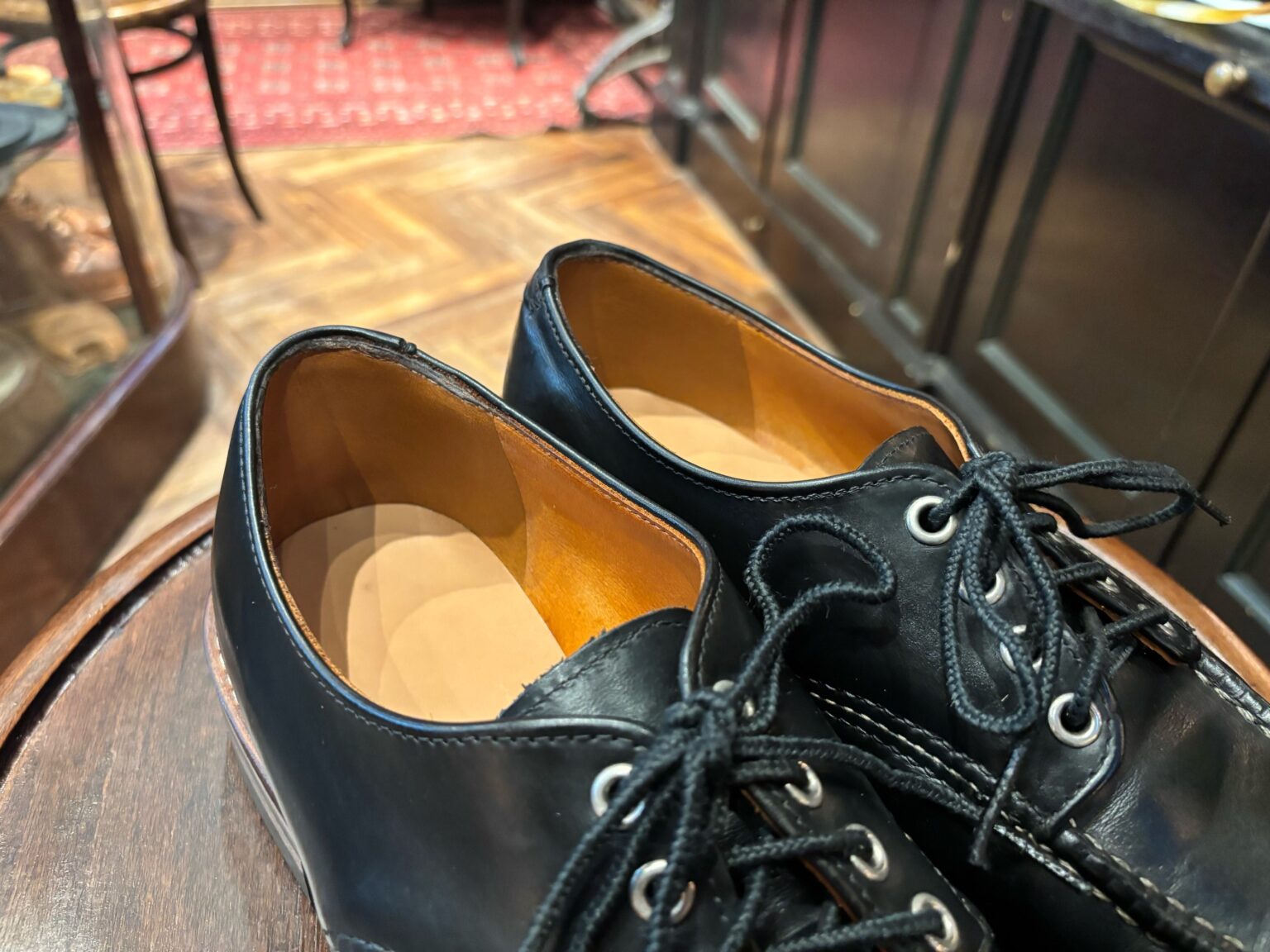最後に無色のクリームでアッパーをケアし、しっかり保革して自然な艶が蘇りました。