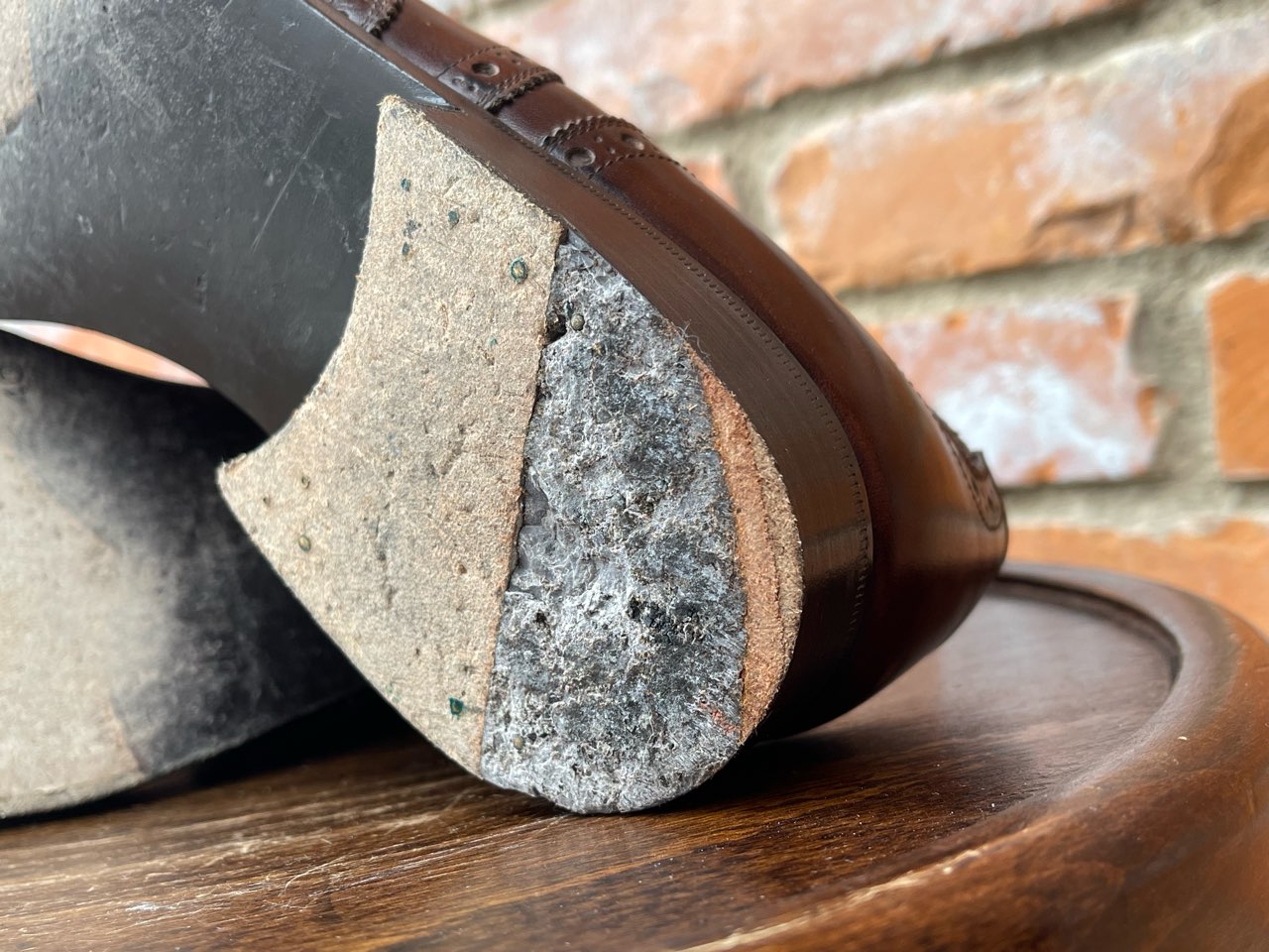 削れていた積み革は、革で継ぎ足し厚みを戻しております。