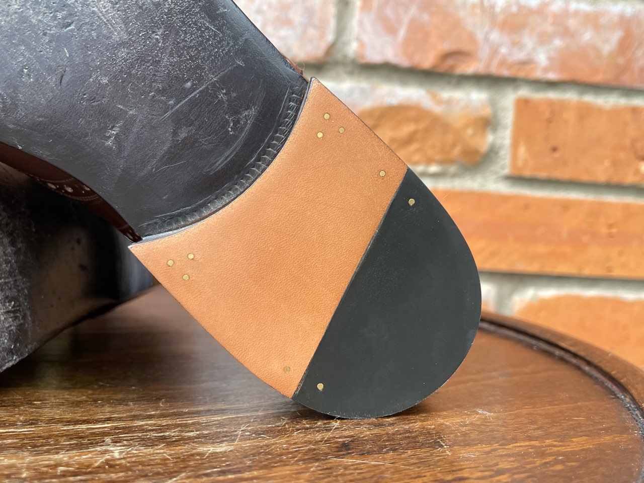 つま先にはヴィンテージスチールを付けて補強いたしました。