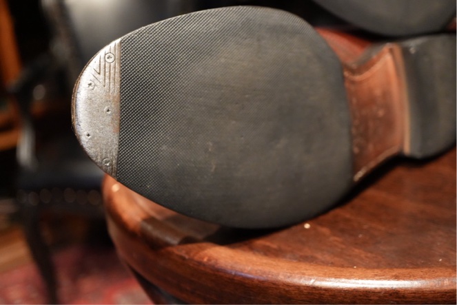 レザーソールにハーフラバーとヴィンテージスティールを取り付けて仕上げています。