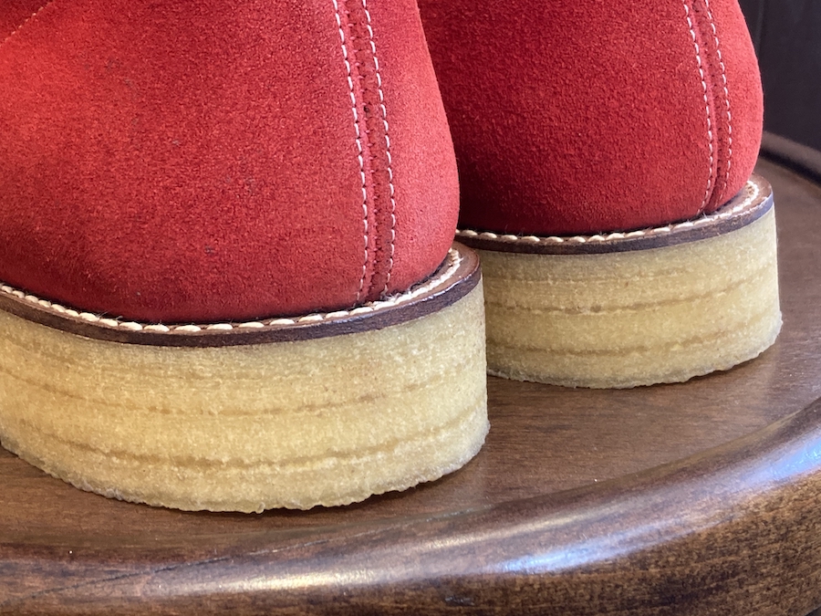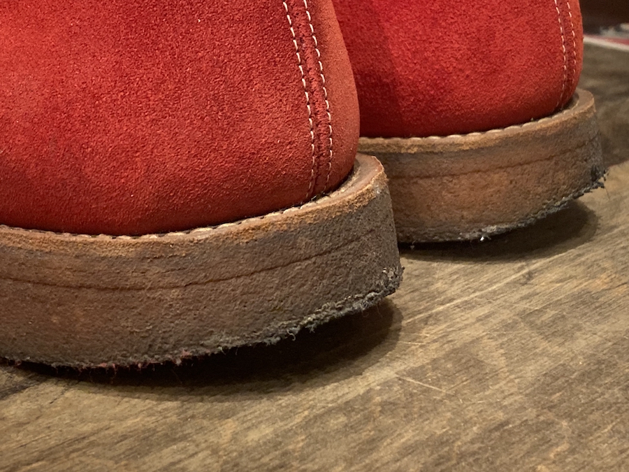 オリジナル通りクレープソールでのソール交換、アッパーのメンテナンスを行いました。
