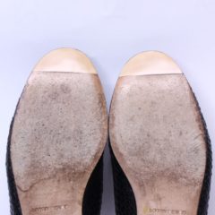 つま先の減りをレザーで補修します。